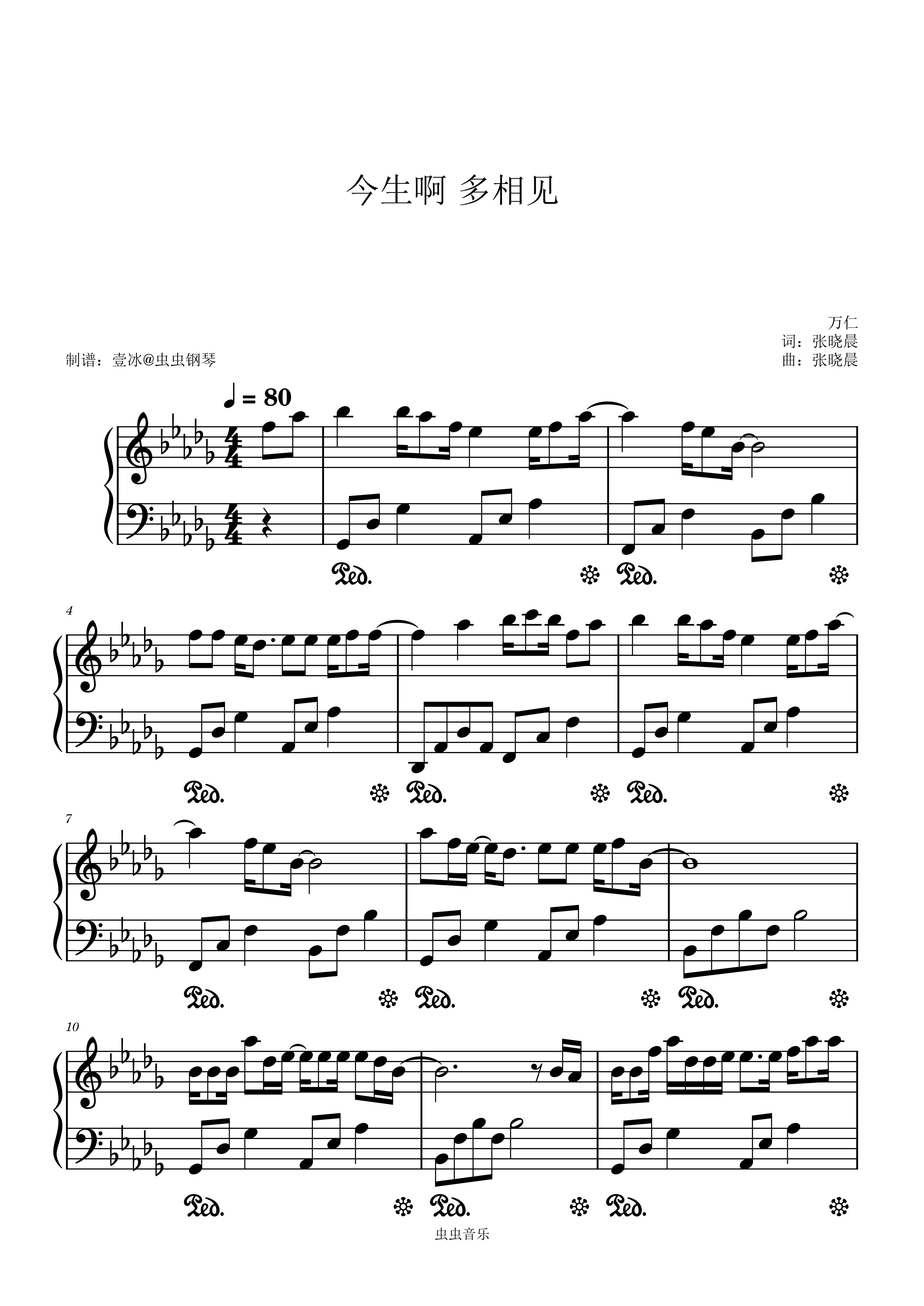 钢琴谱:今生啊多相见 万仁 - 原调