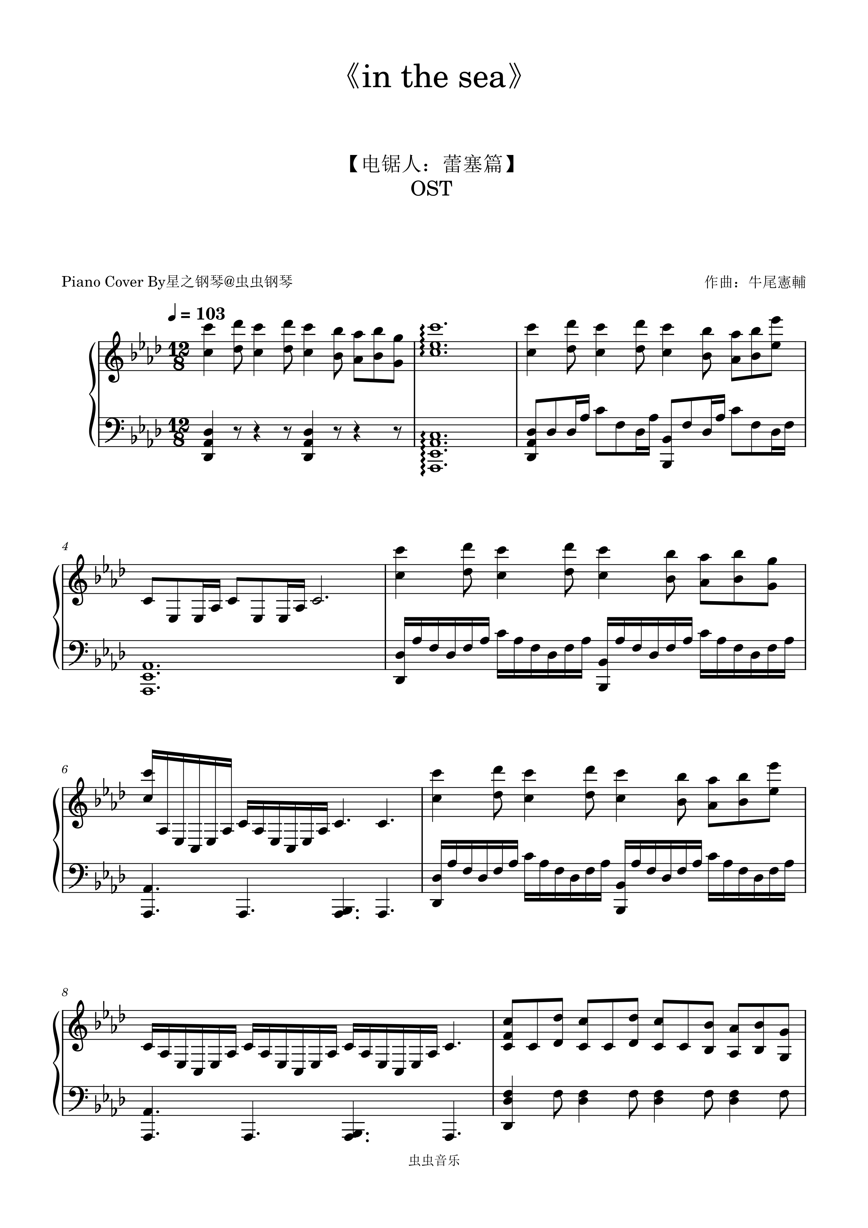 钢琴谱:【电锯人:蕾塞篇】《in the sea》钢琴独奏版~星之钢琴~
