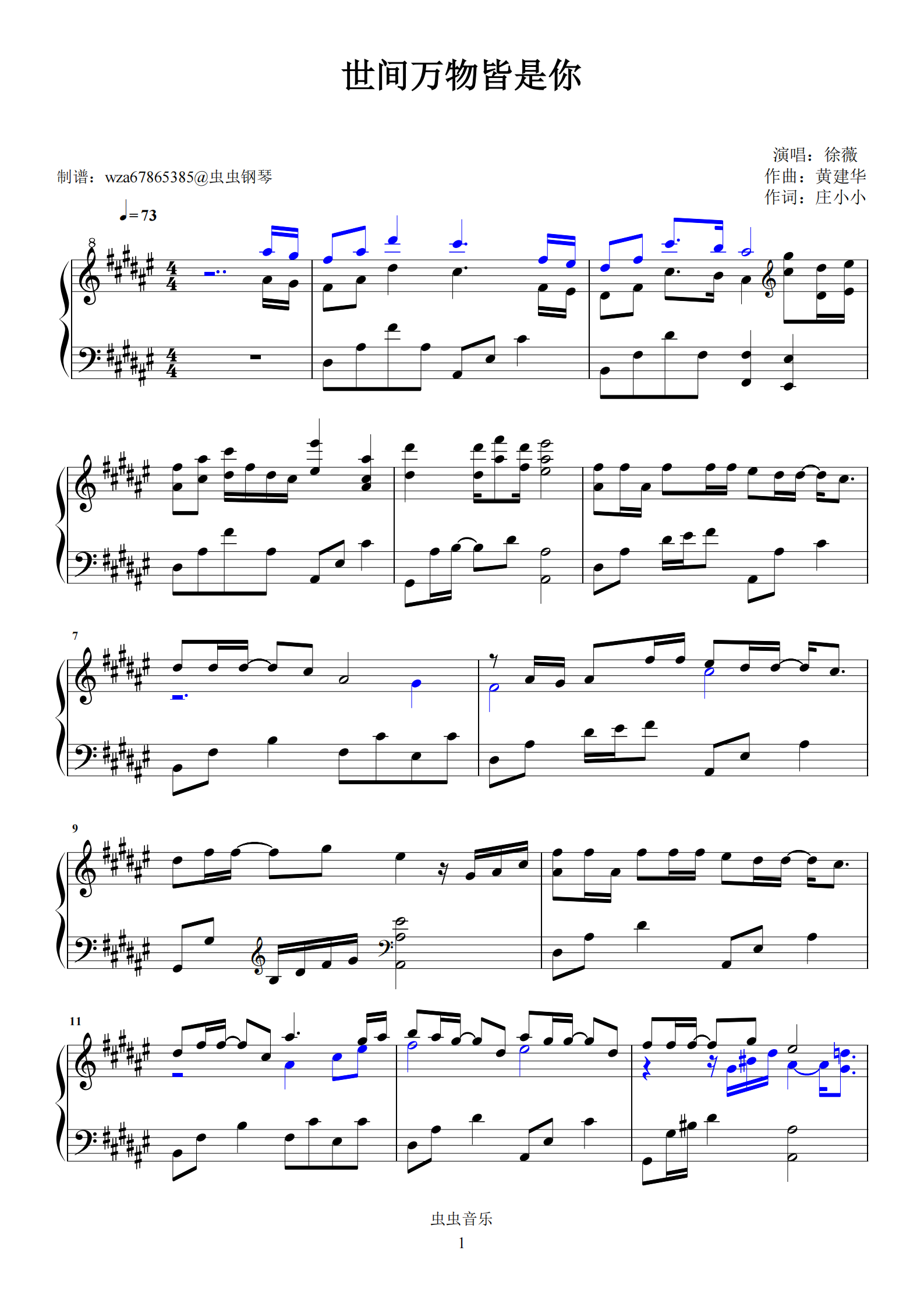 钢琴谱:世间万物皆是你