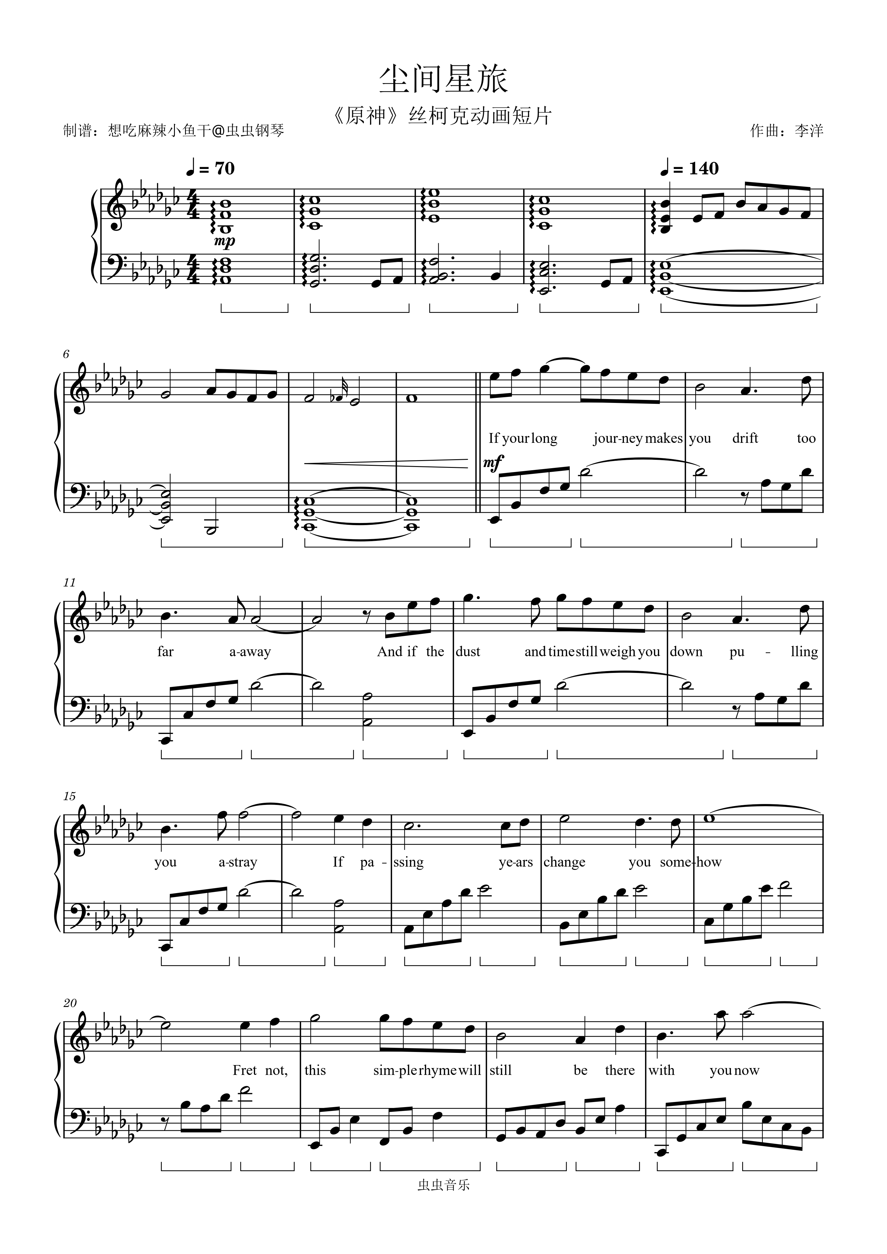 钢琴谱:尘间星旅(《原神》丝柯克动画短片)