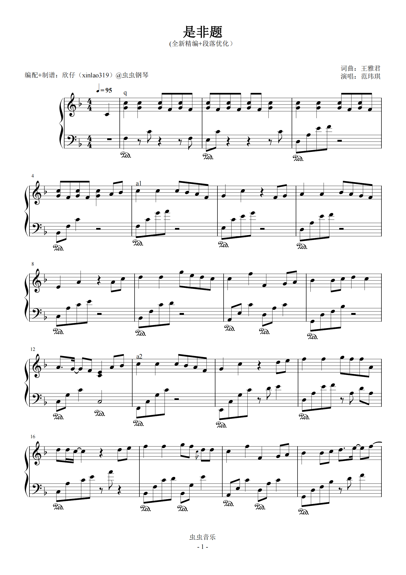 钢琴谱:是非题(F、范玮琪、段落优化)