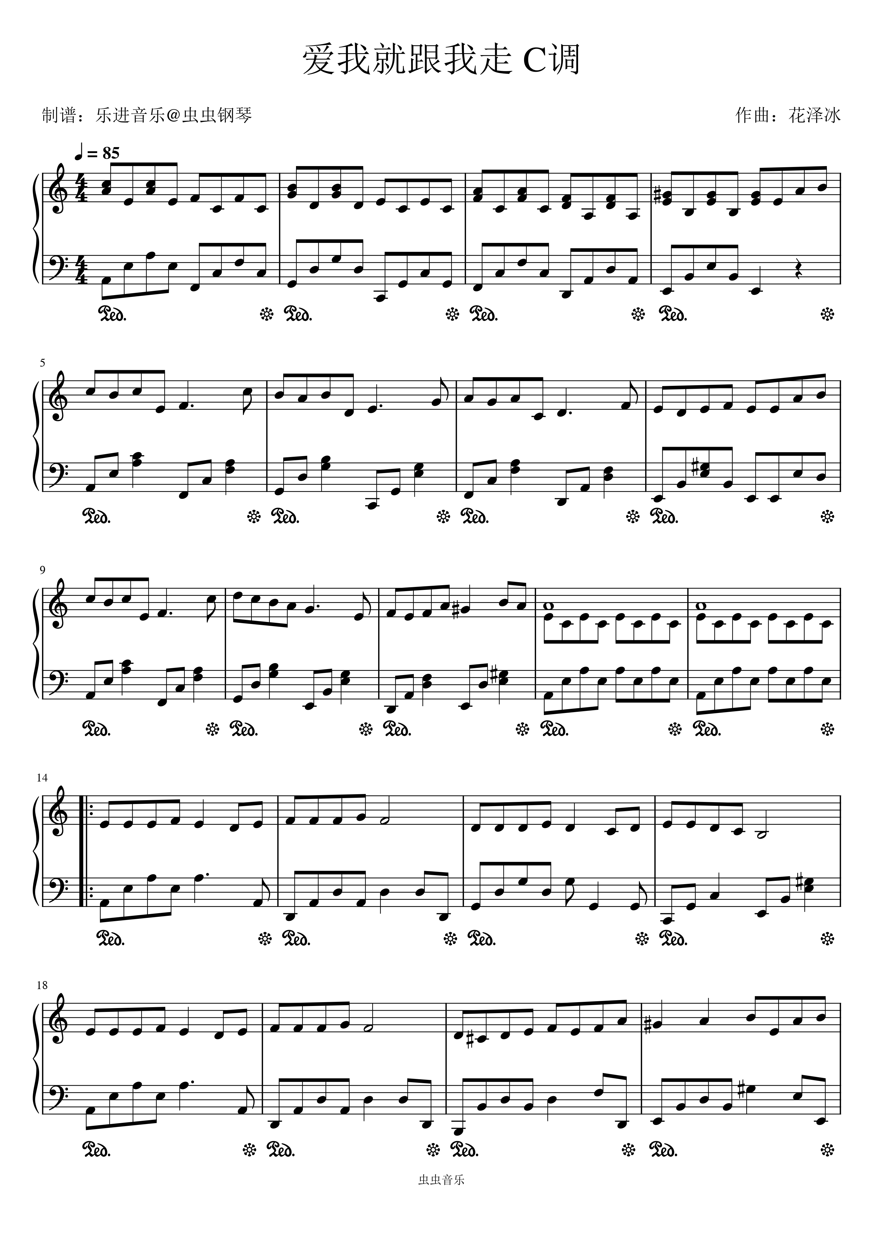 钢琴谱:《爱我就跟我走》C调无转调