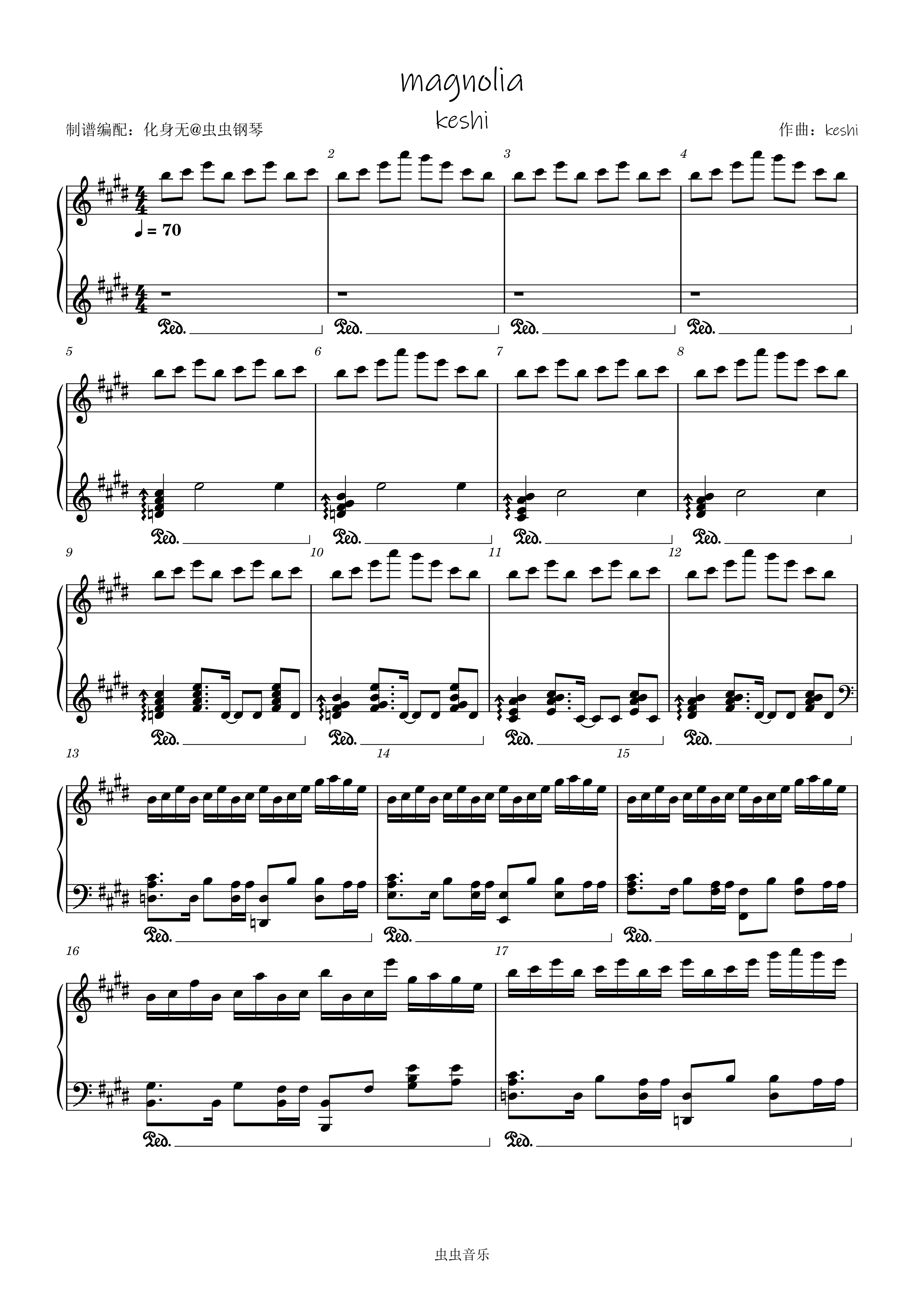 钢琴谱:magnolia 原调独奏版 化身无编配