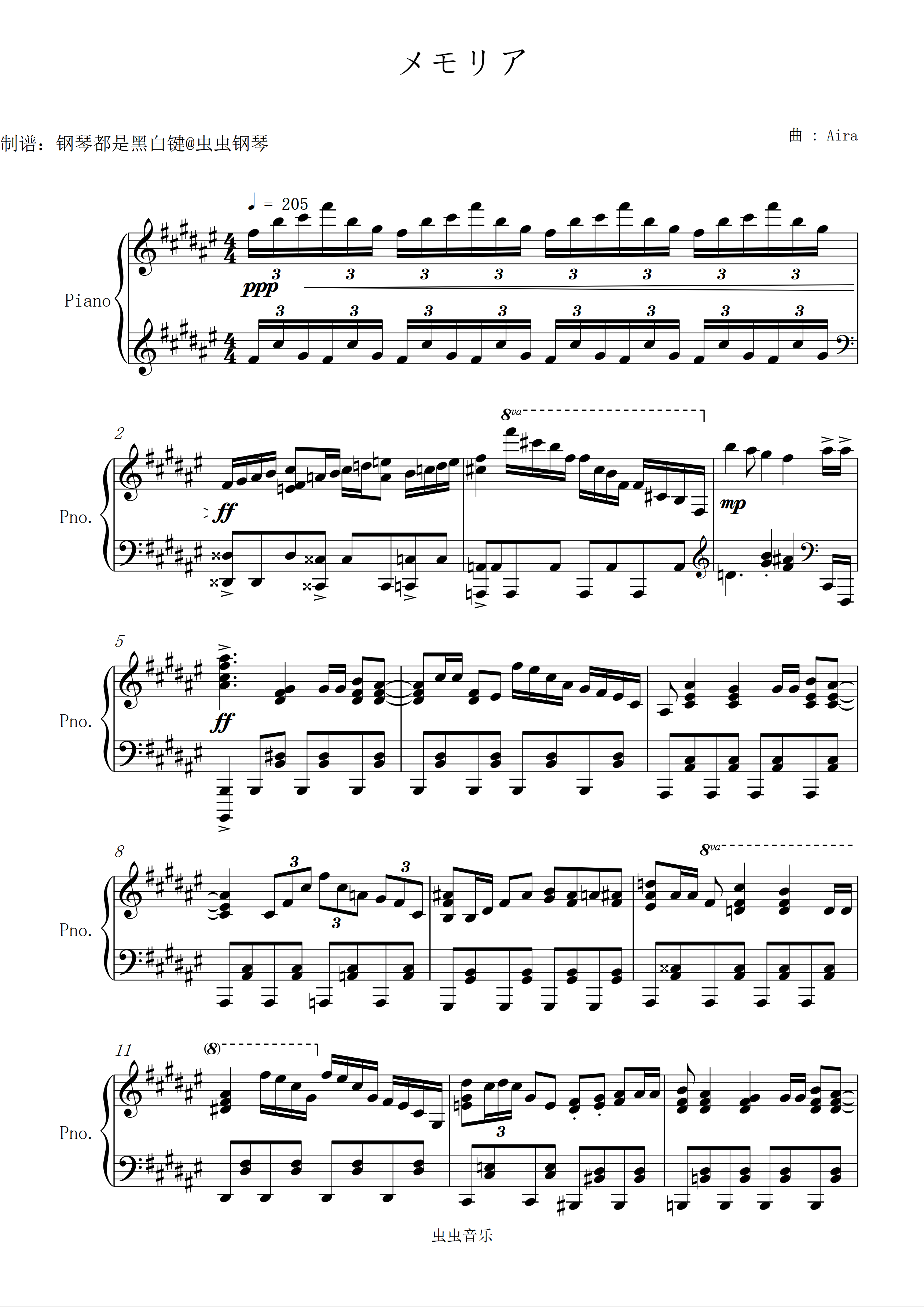 メモリア钢琴简谱 数字双手 Aira