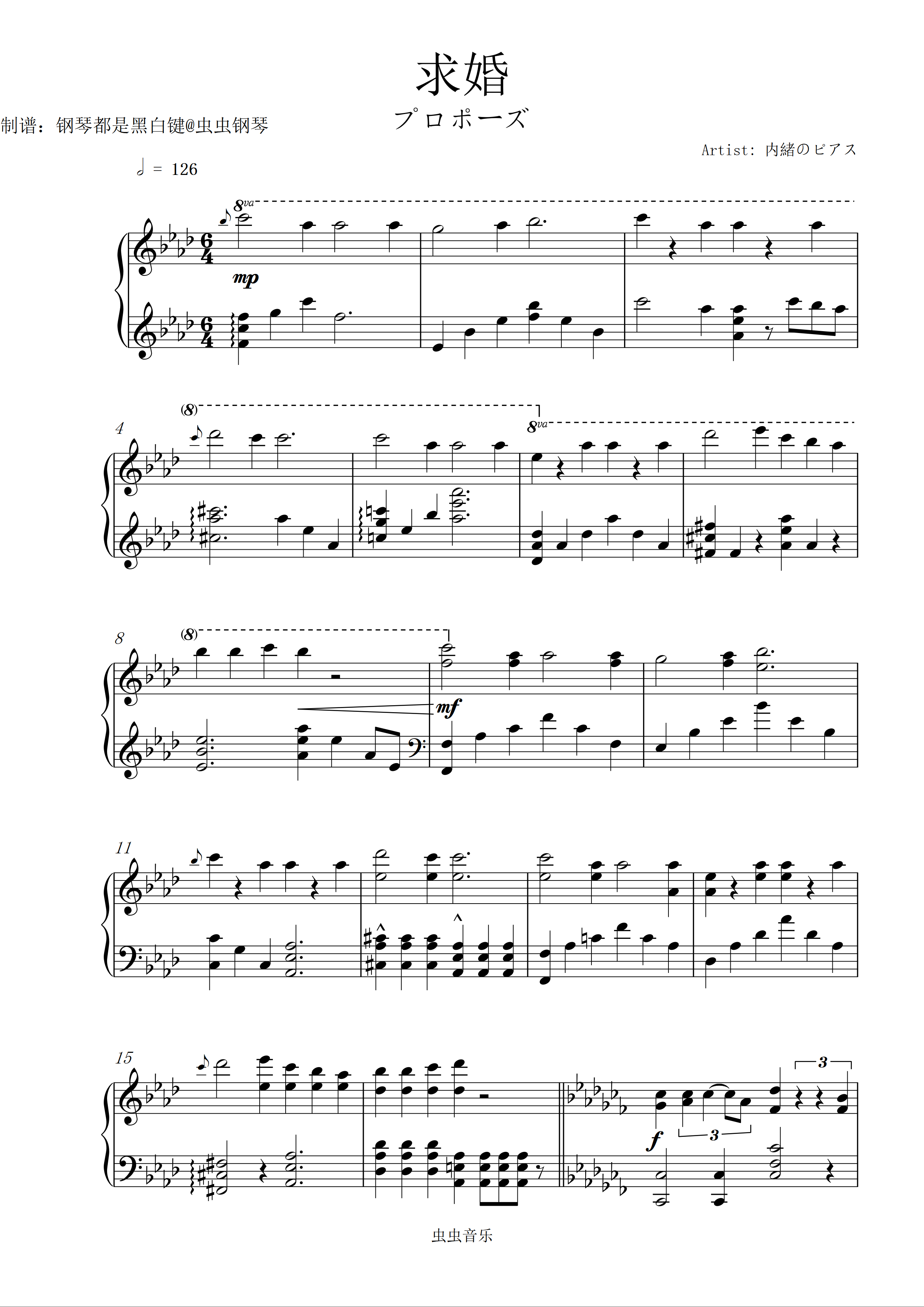 钢琴谱:求婚 / プロポーズ【内緒のピアス / 可不】