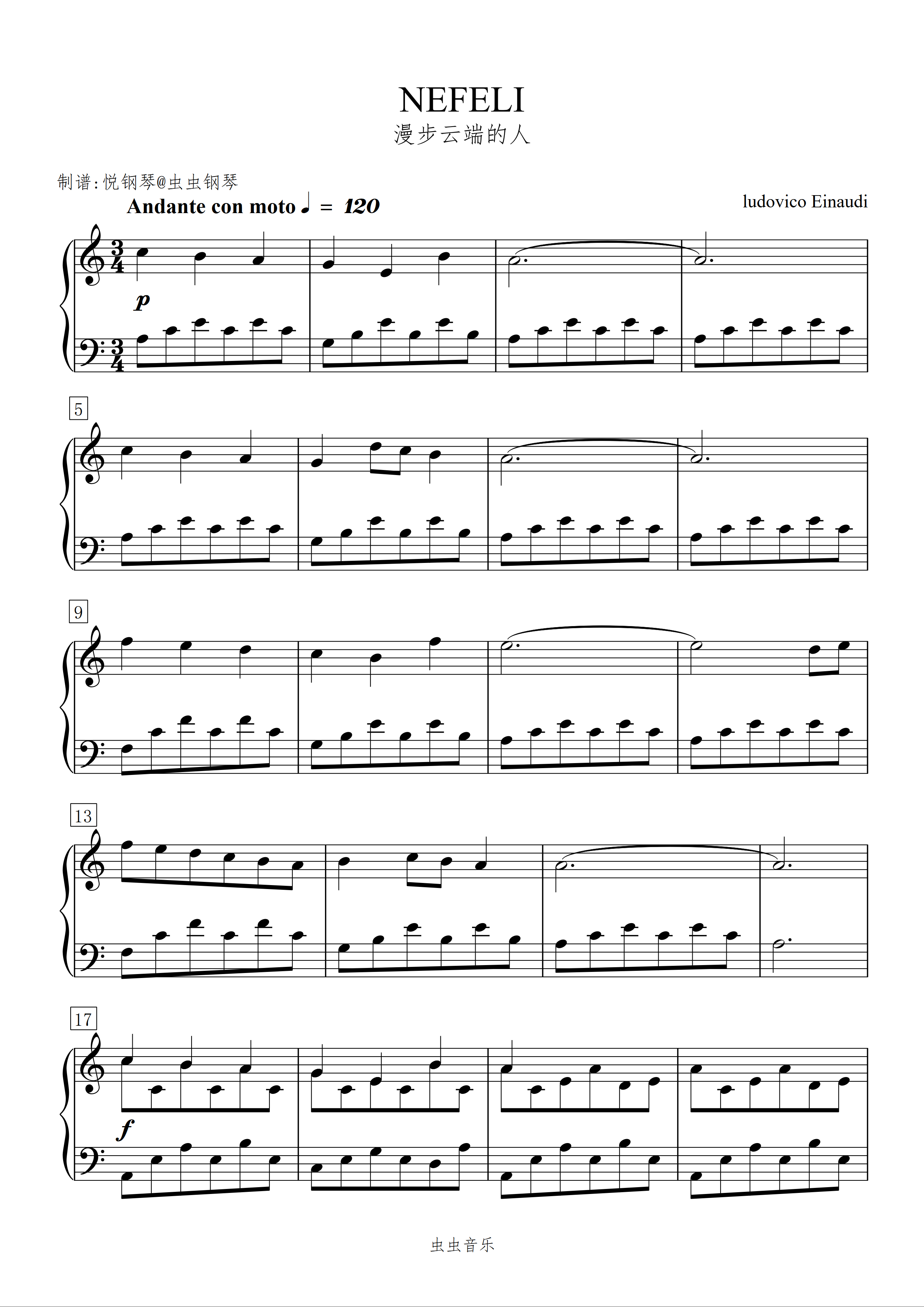 钢琴谱:漫步云端的人/NEFELI 【宁静】