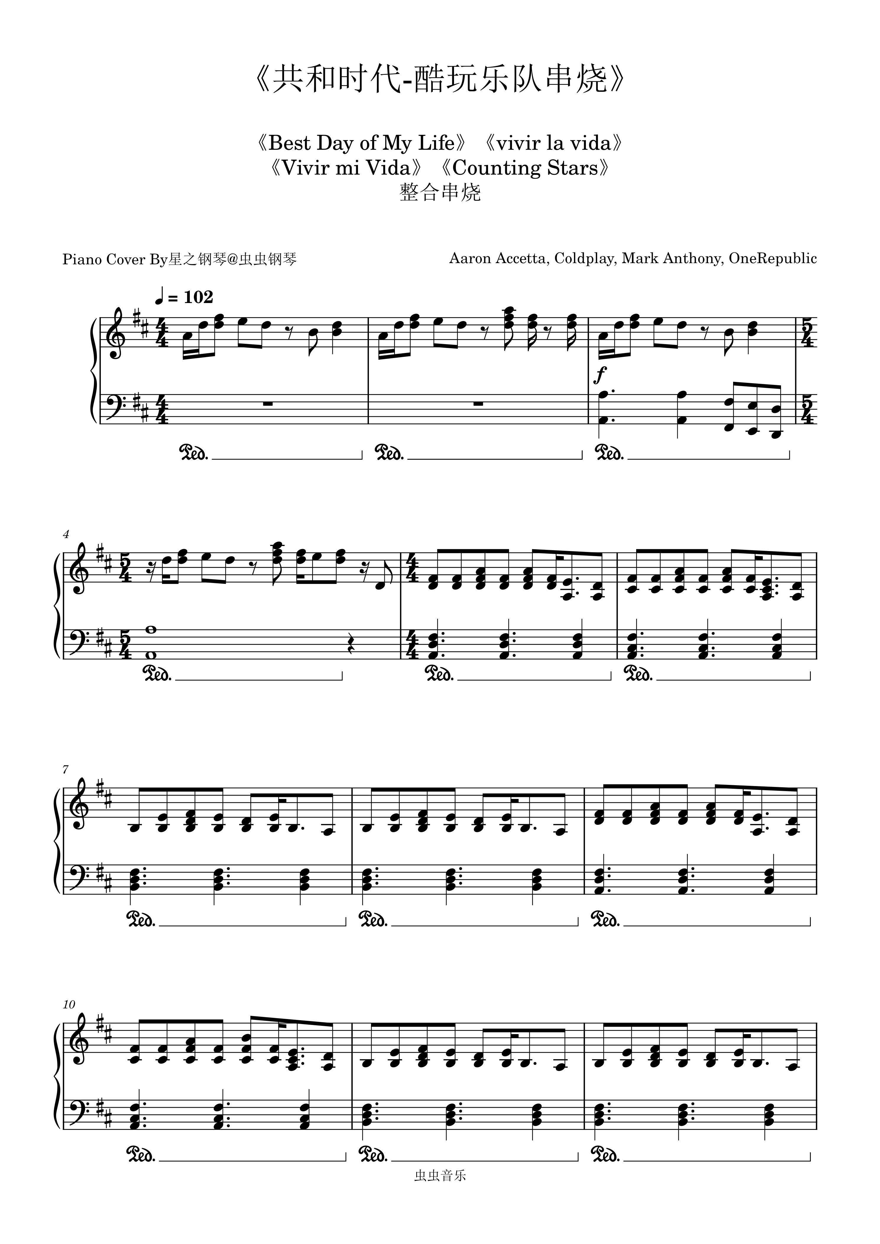 【共和时代--酷玩乐队-Marc Anthony】《歌曲串烧》华丽钢琴谱~星之钢琴~