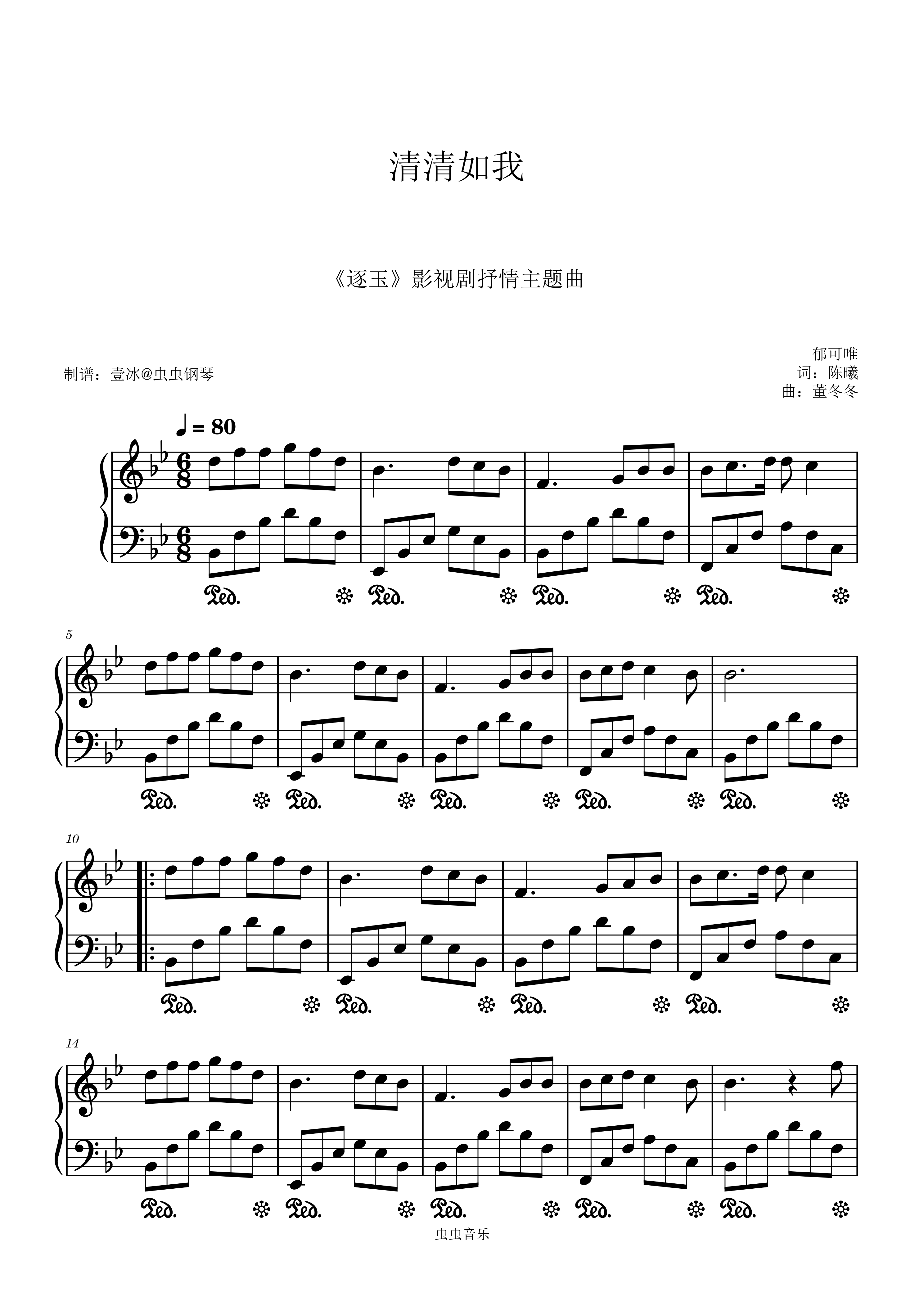 钢琴谱:清清如我 (《逐玉》影视剧抒情主题曲) - 郁可唯 原调