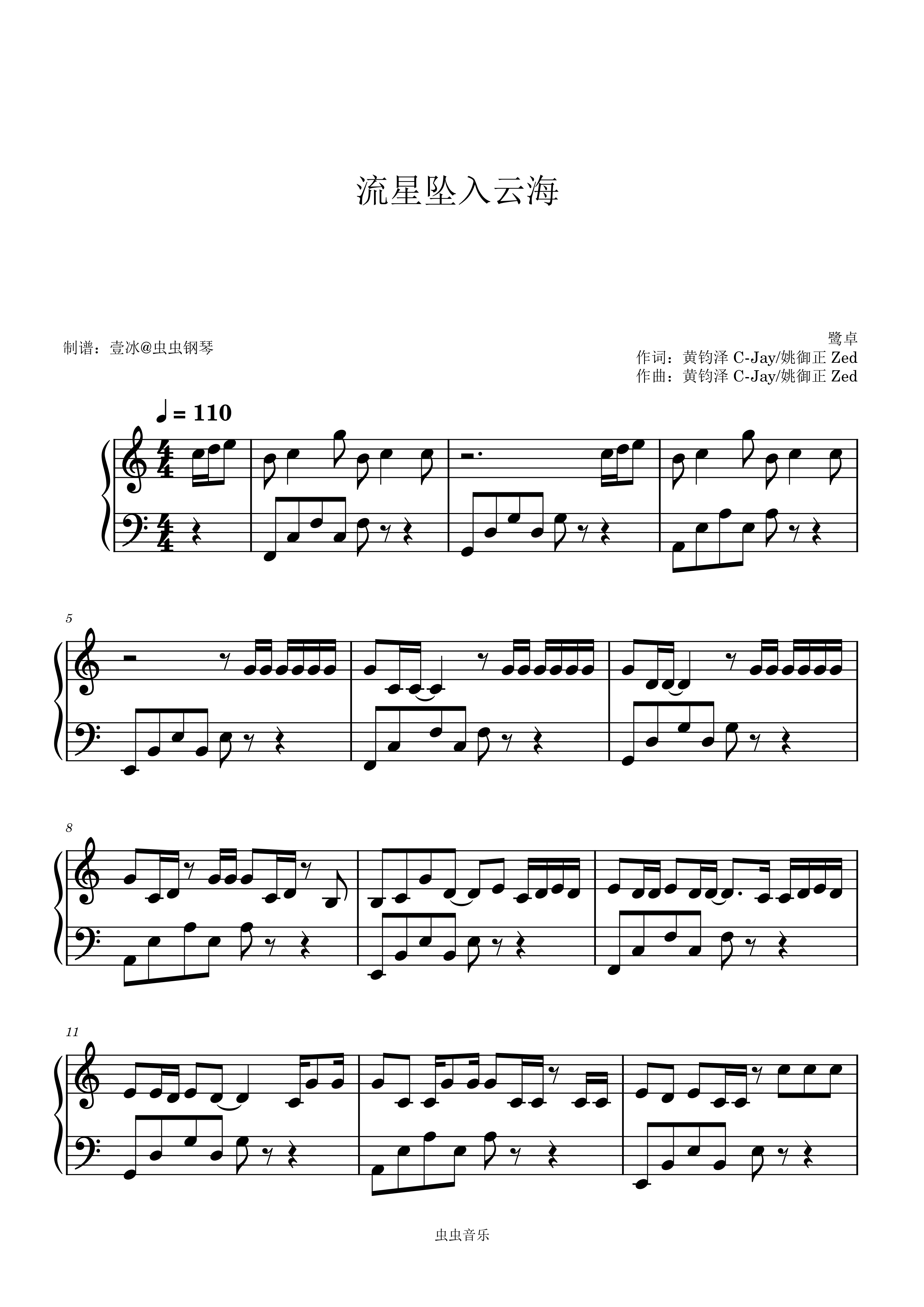 钢琴谱:流星坠入云海 - 鹭卓 C调