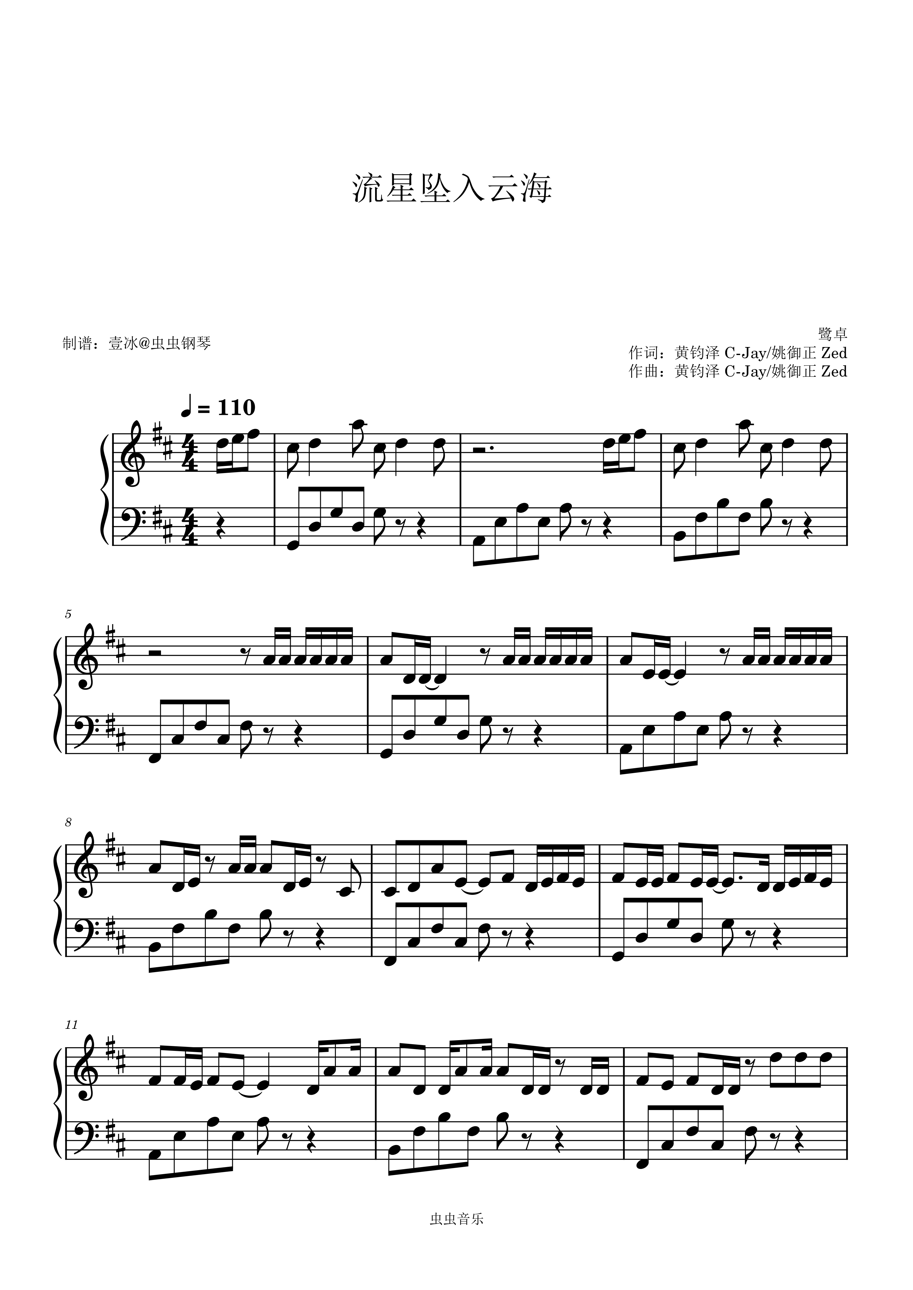 钢琴谱:流星坠入云海 - 鹭卓 原调