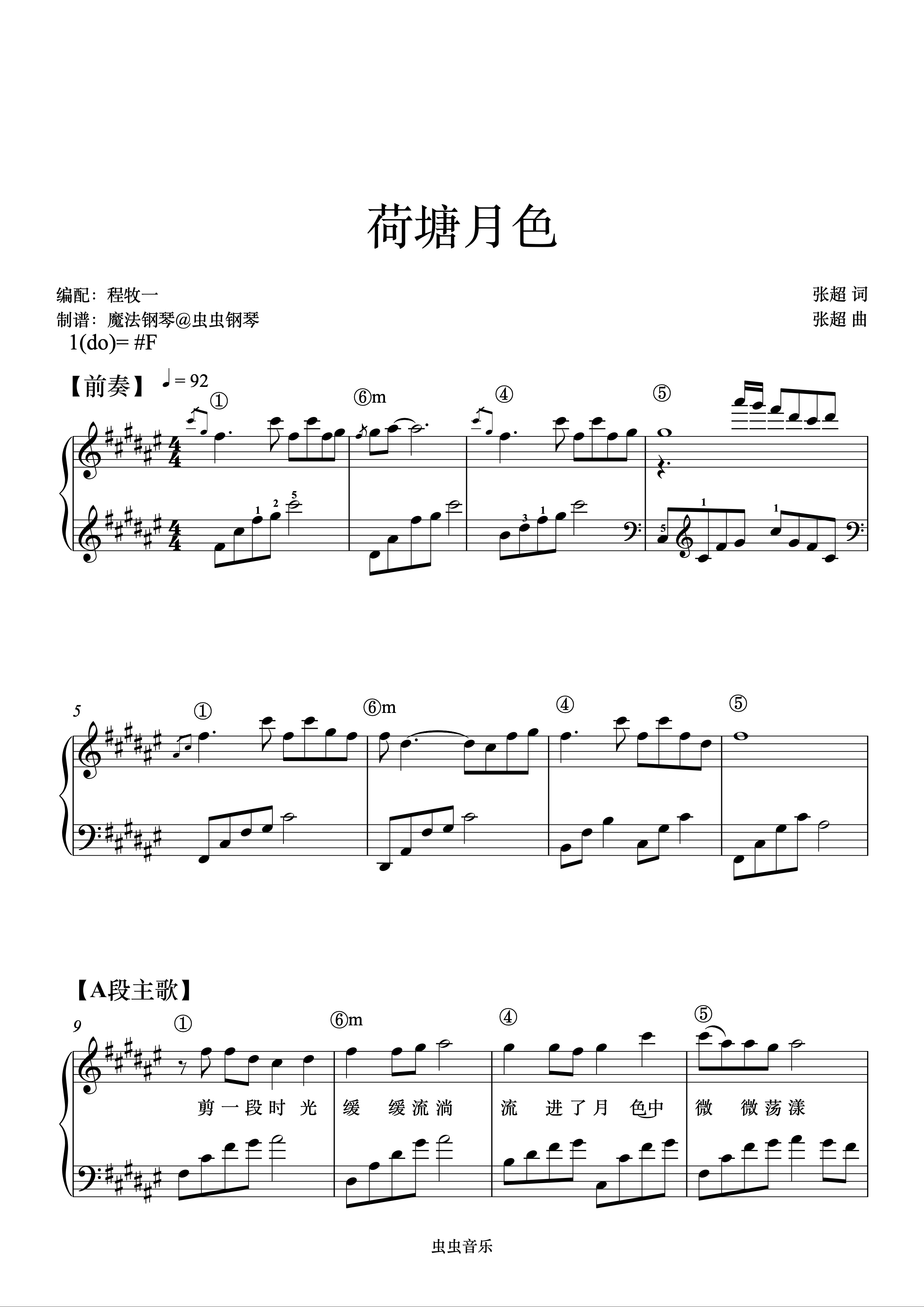 • 荷塘月色钢琴简谱 C调 数字双手 张超