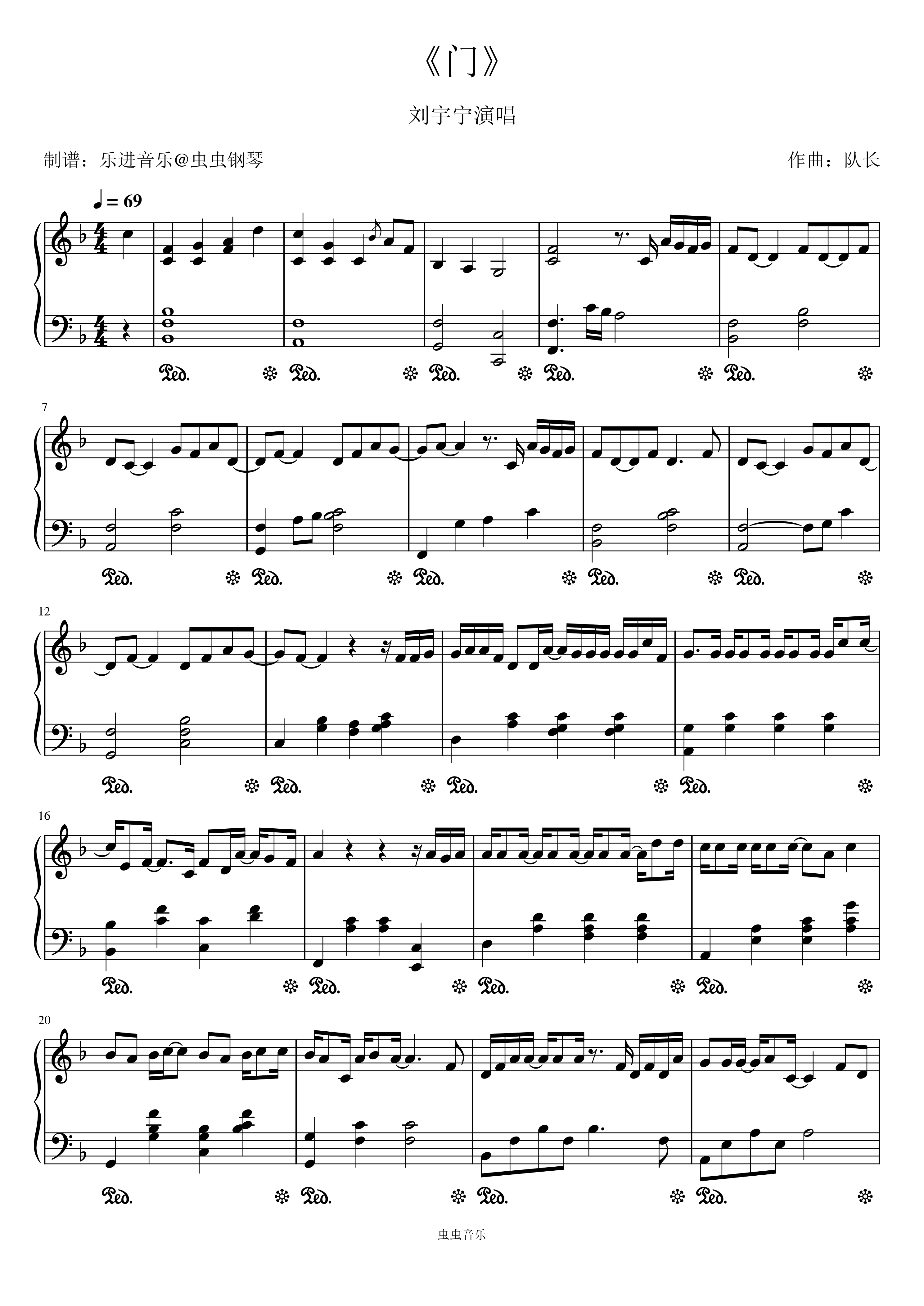 钢琴谱:《门》刘宇宁演唱