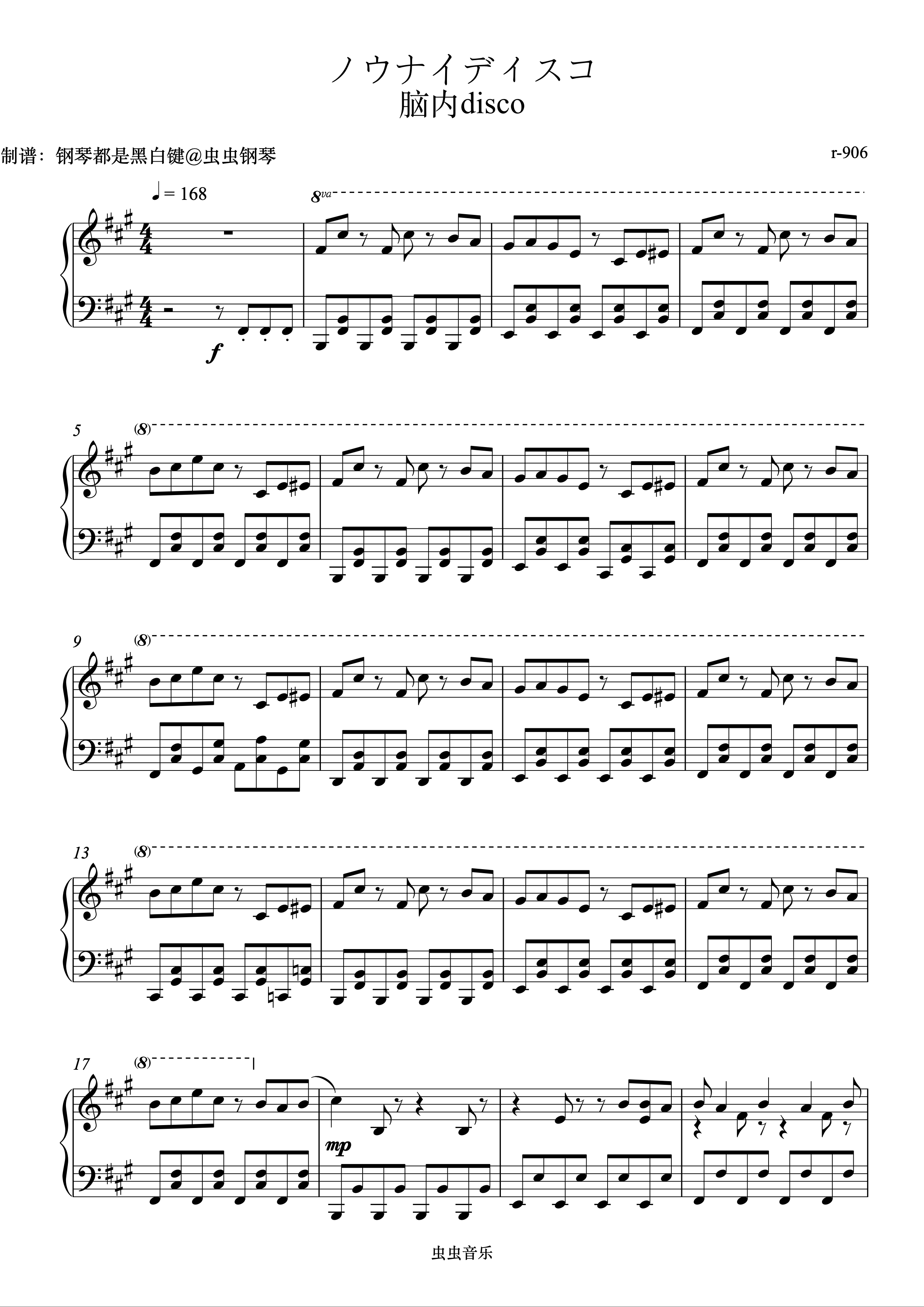 钢琴谱:【初音ミク】脑内disco/ノウナイディスコ