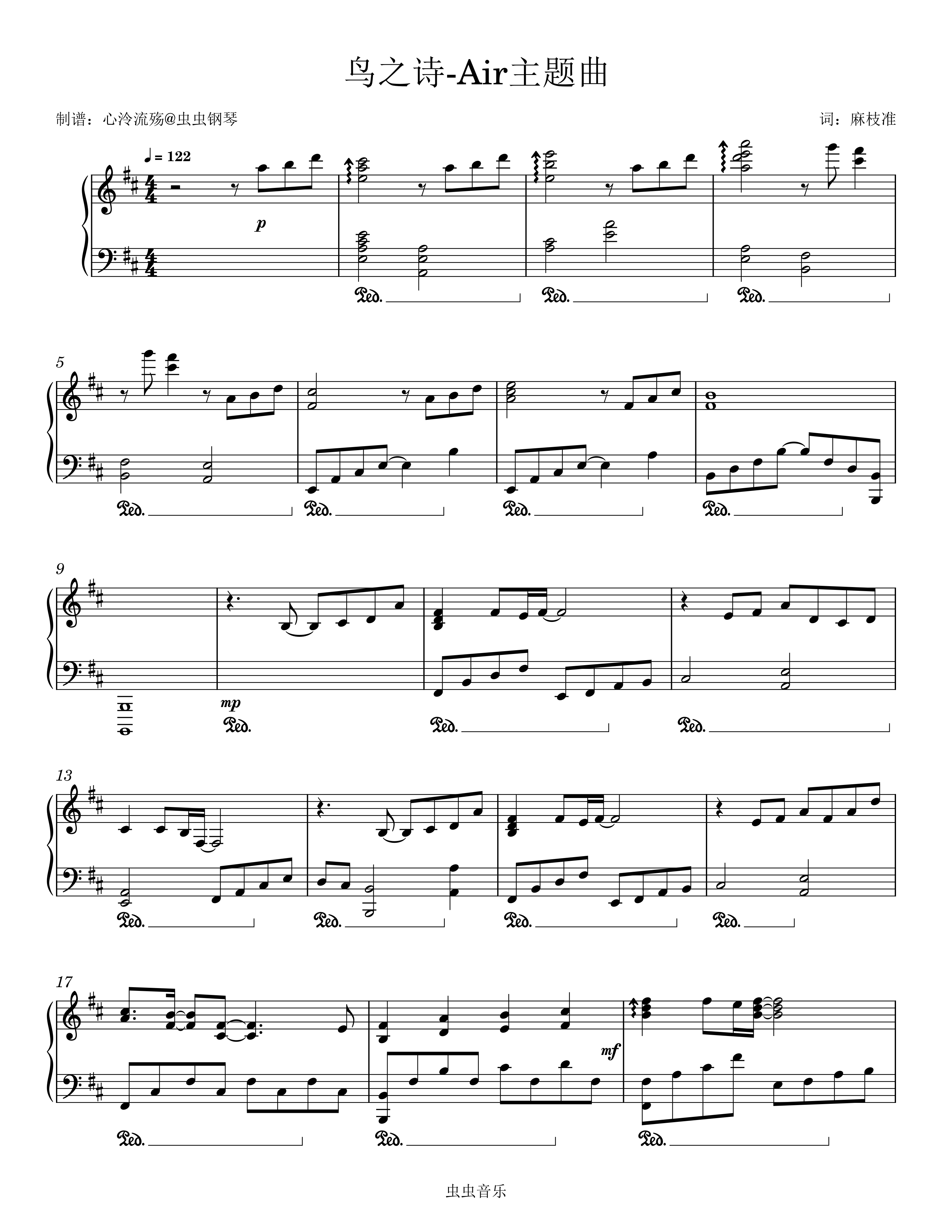 • 鸟之诗钢琴简谱 D调 数字双手