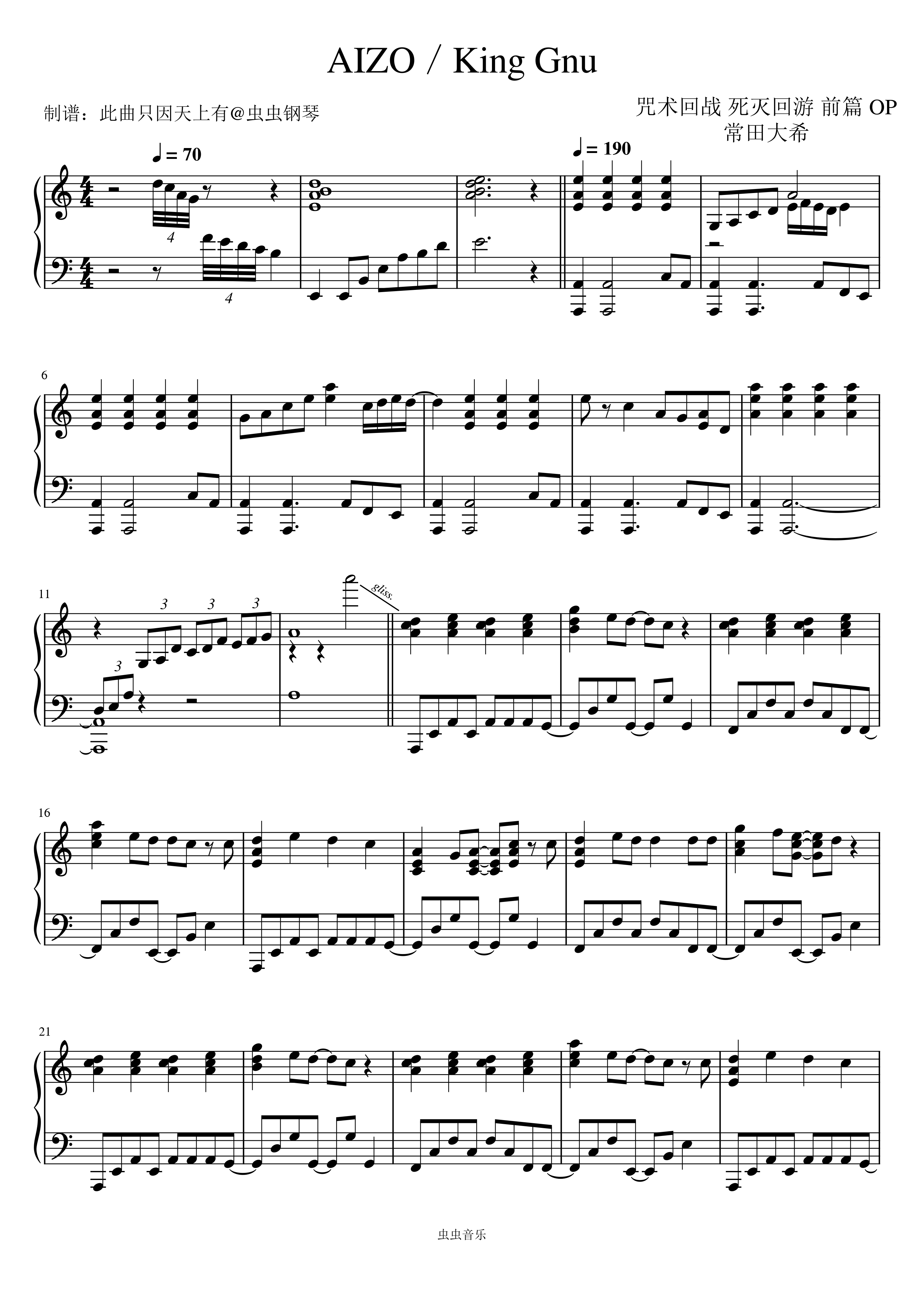AIZO/King Gnu钢琴简谱 数字双手 常田大希