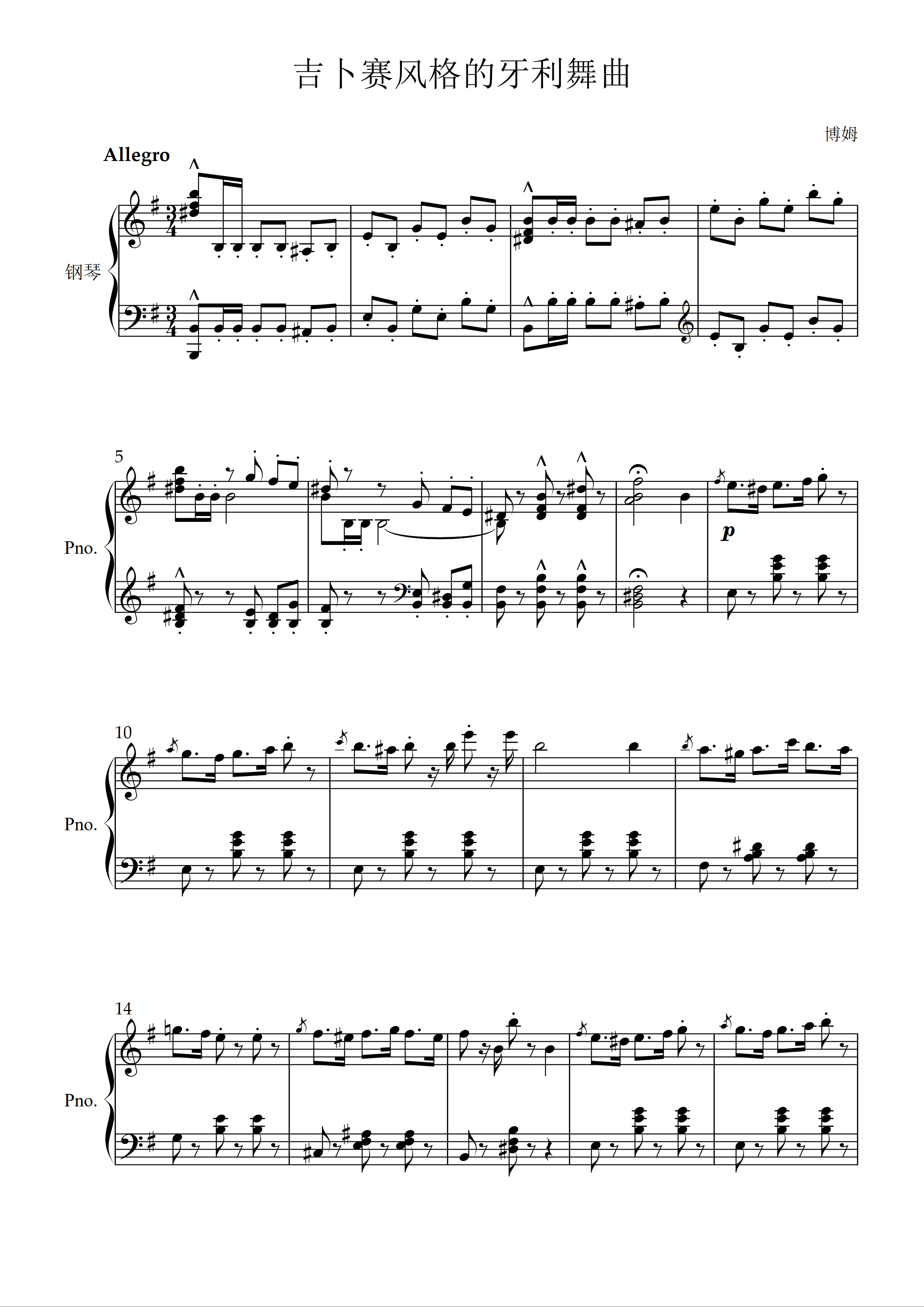 • 吉格舞曲钢琴简谱 D调 数字双手