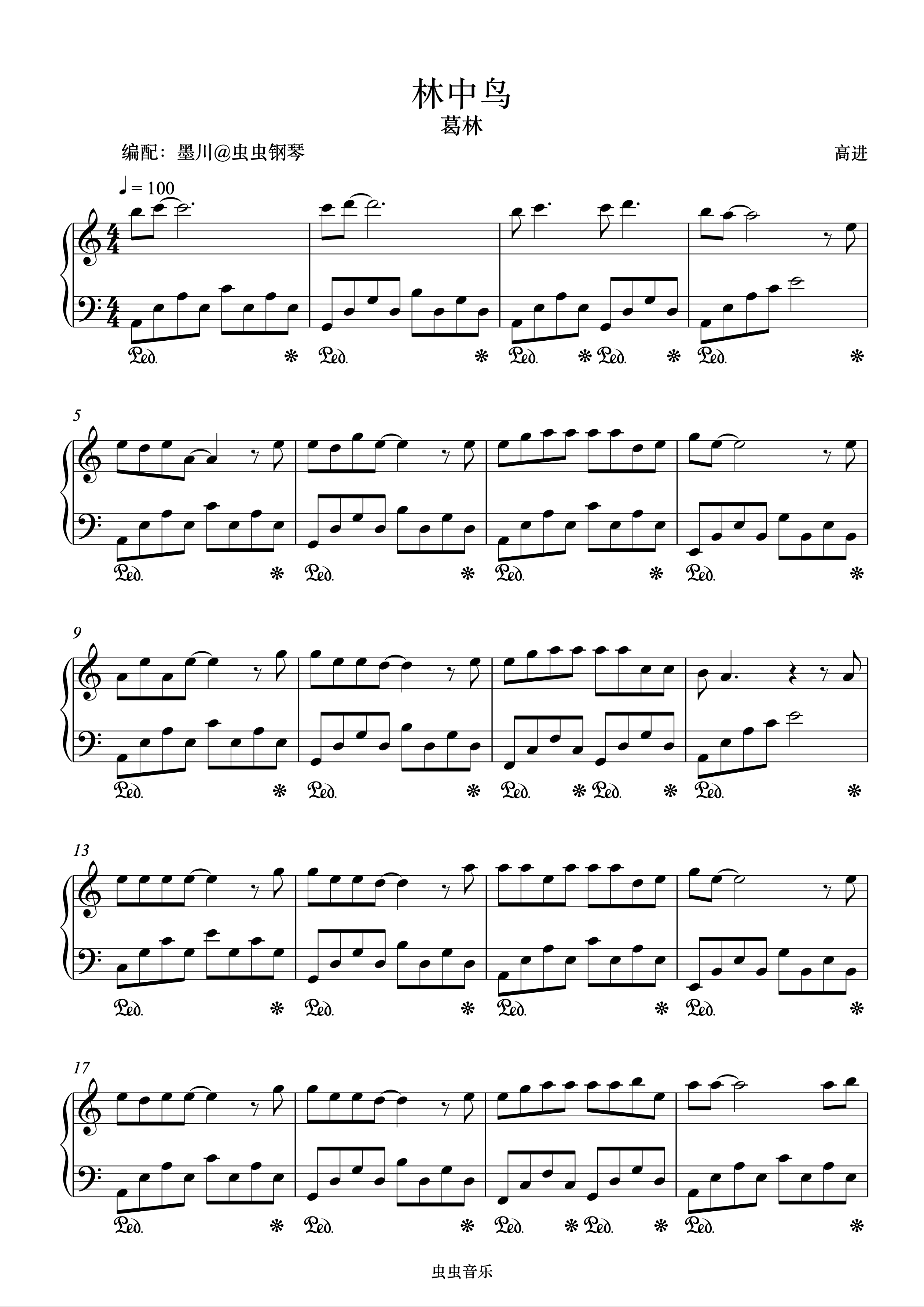 • 林中鸟钢琴简谱 C调 数字双手 高进