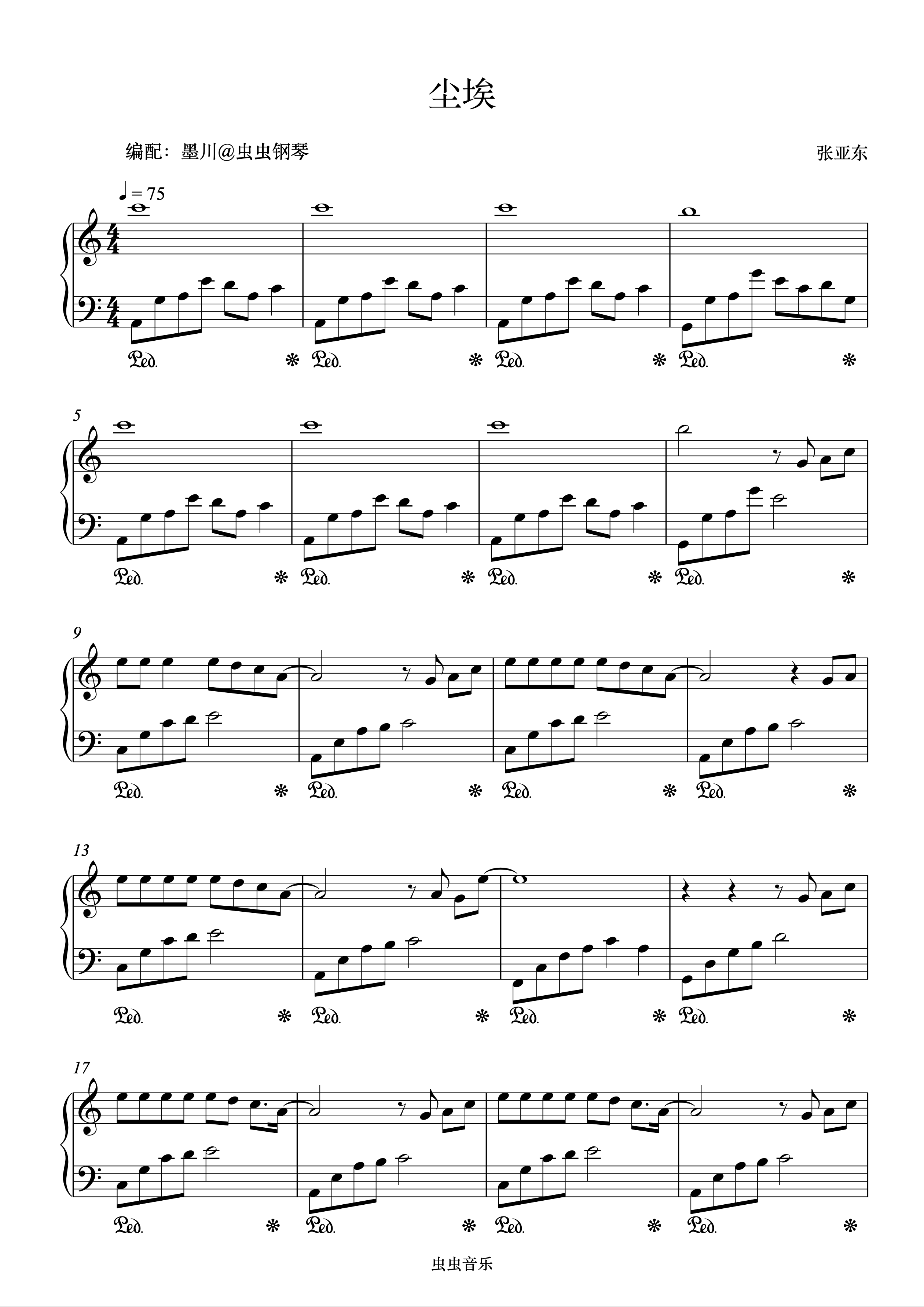 • 尘埃钢琴简谱 C调 数字双手 木兰号AKA陈韦伶