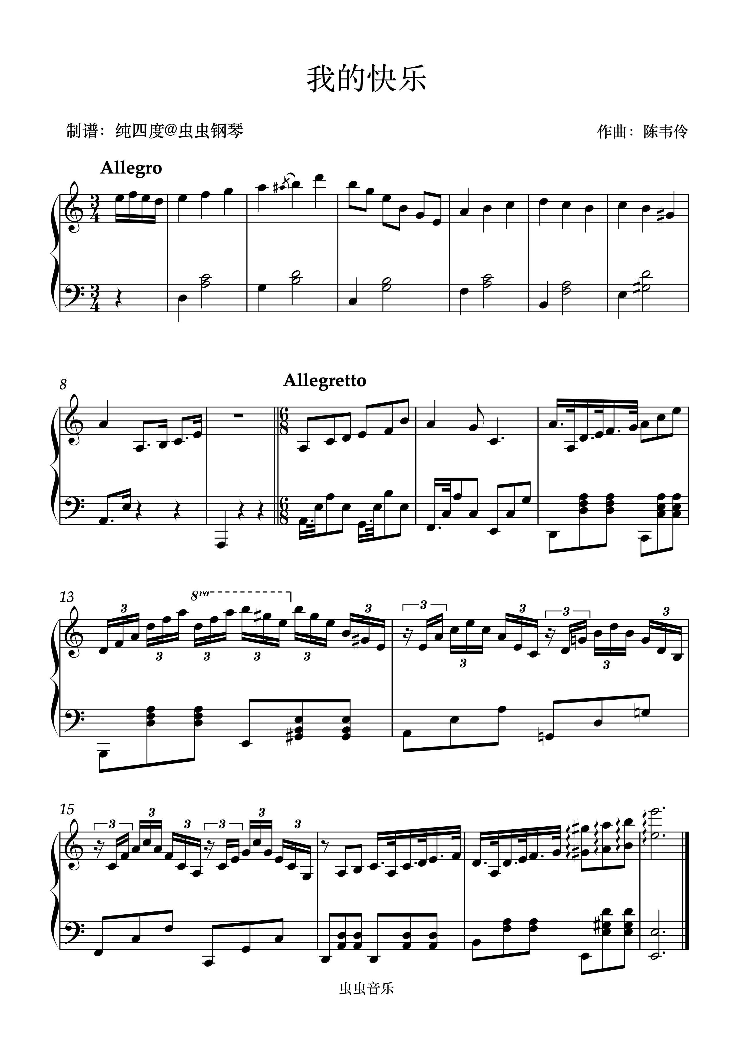 • 我要快乐钢琴简谱 G调 数字双手 邬裕康