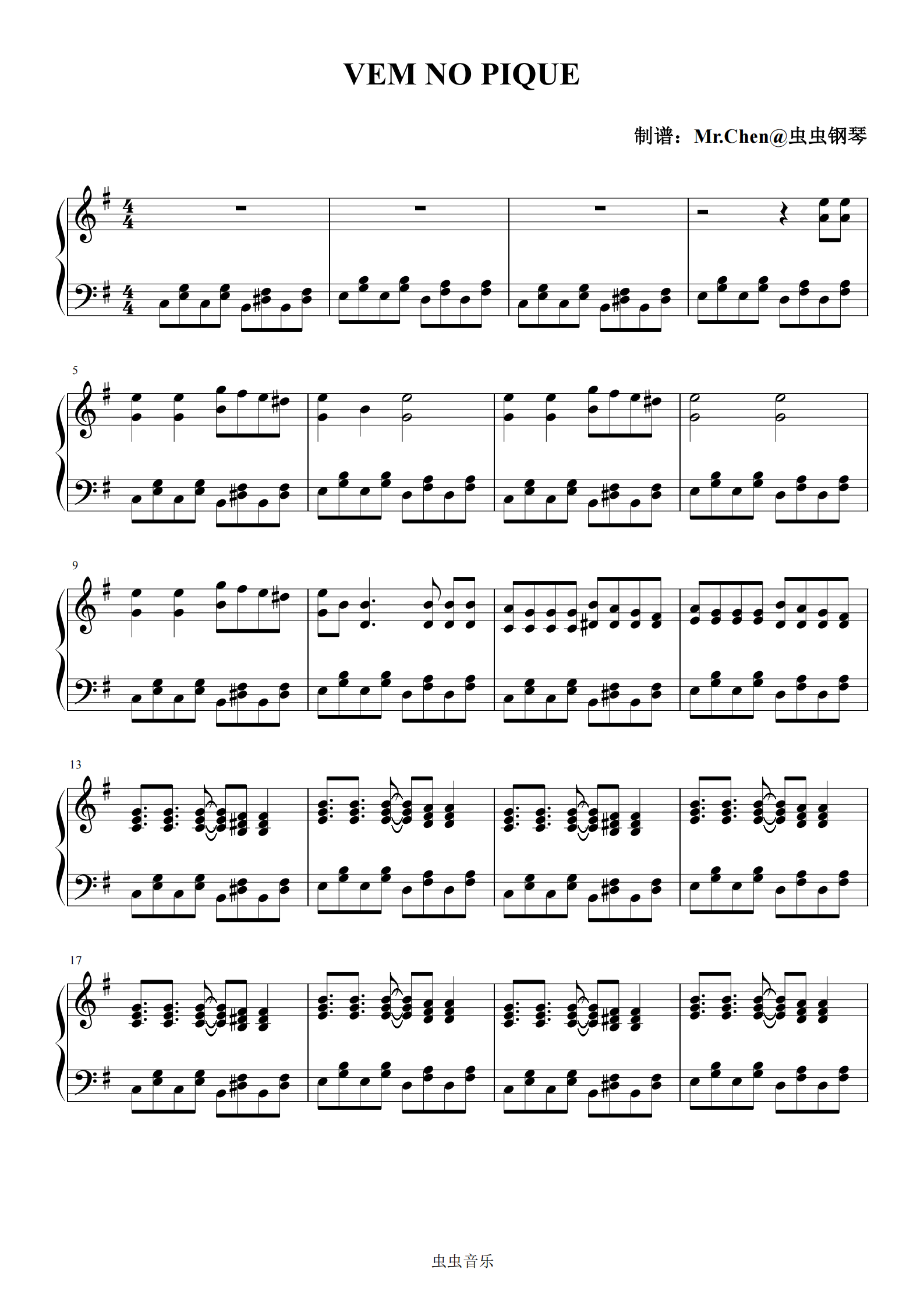 钢琴谱:VEM NO PIQUE G调 - 巴西Funk