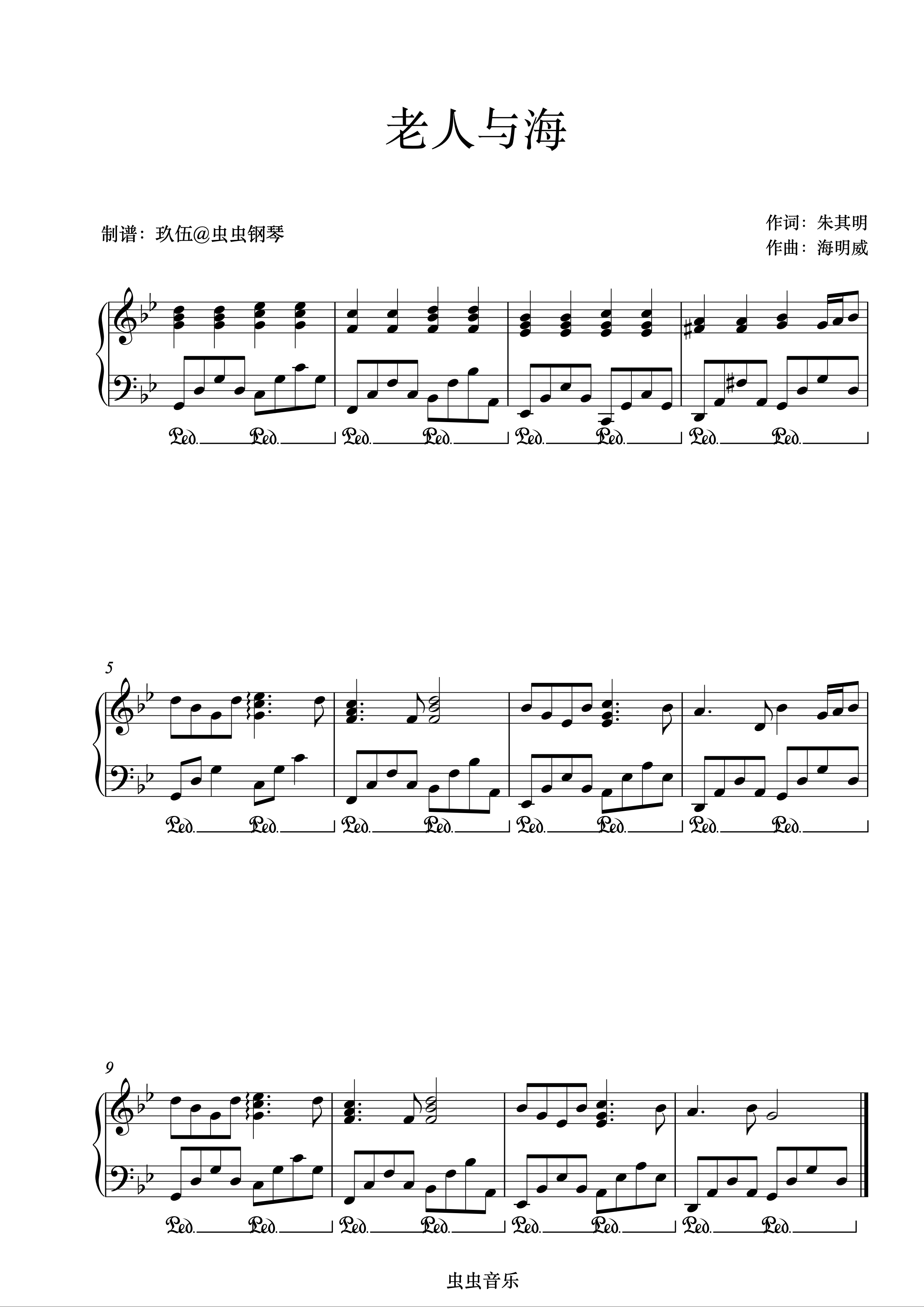 老人与海钢琴简谱 数字双手 朱其民