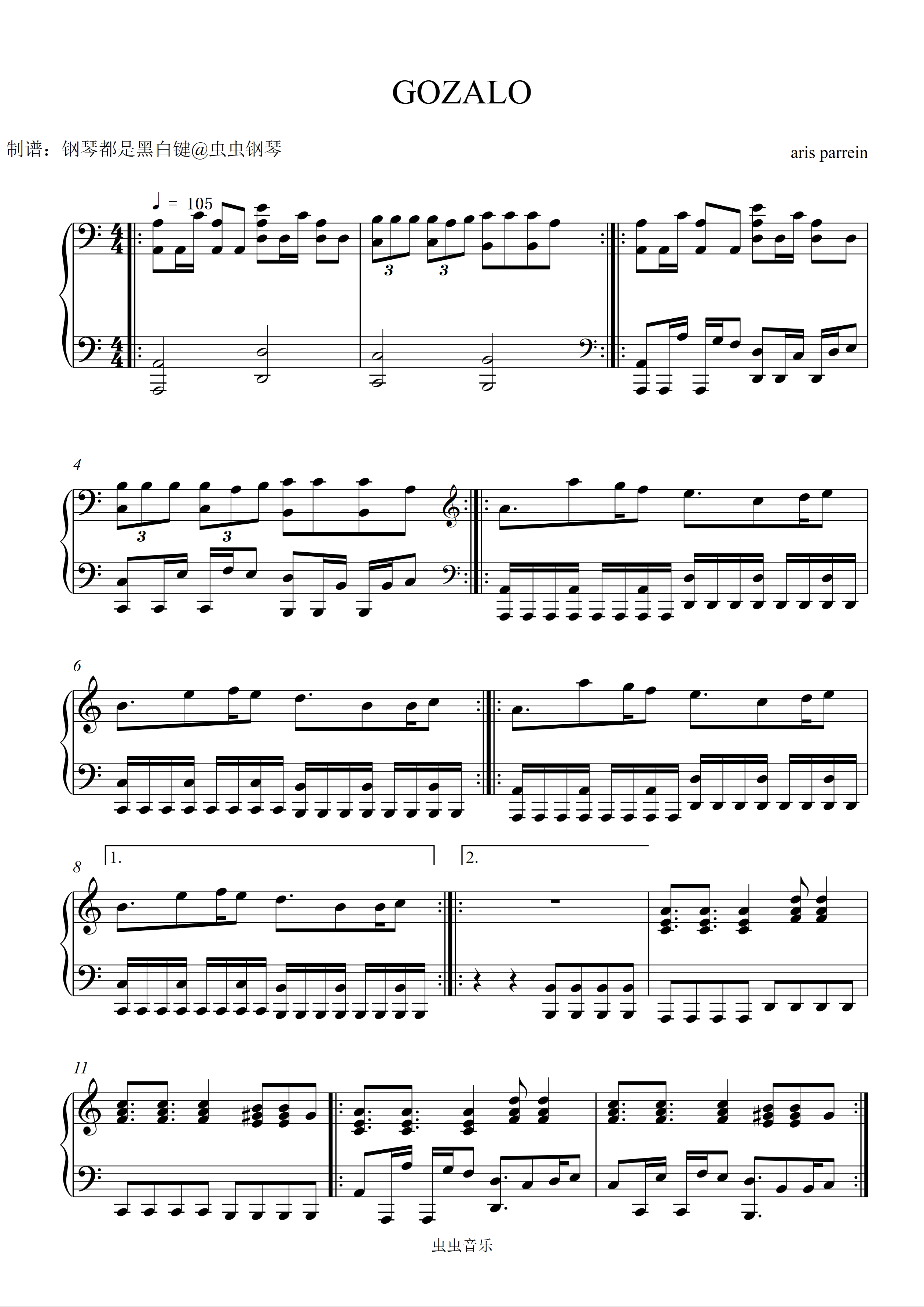 GOZALO钢琴简谱 数字双手 aris parrein