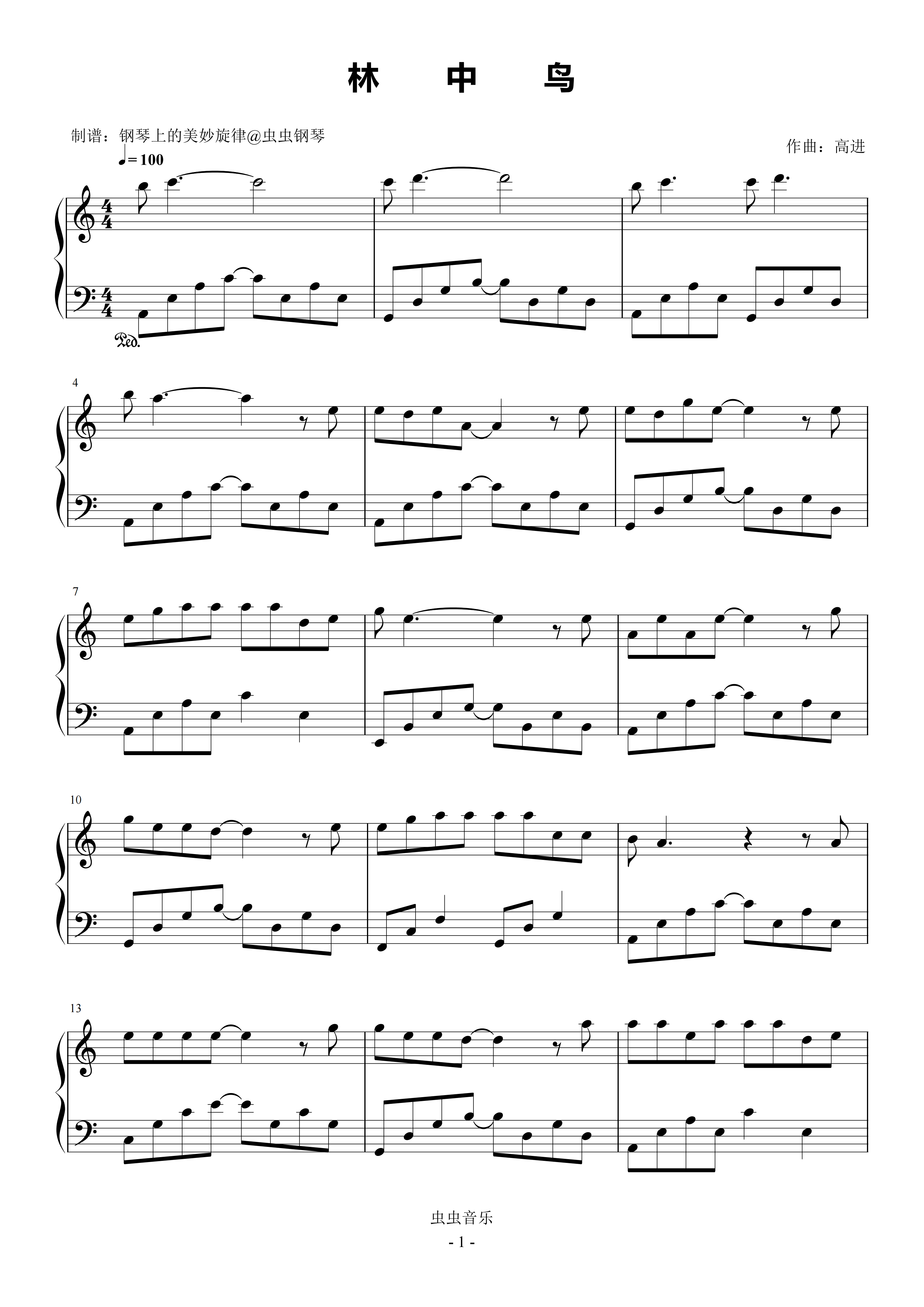• 林中鸟钢琴简谱 C调 数字双手 高进