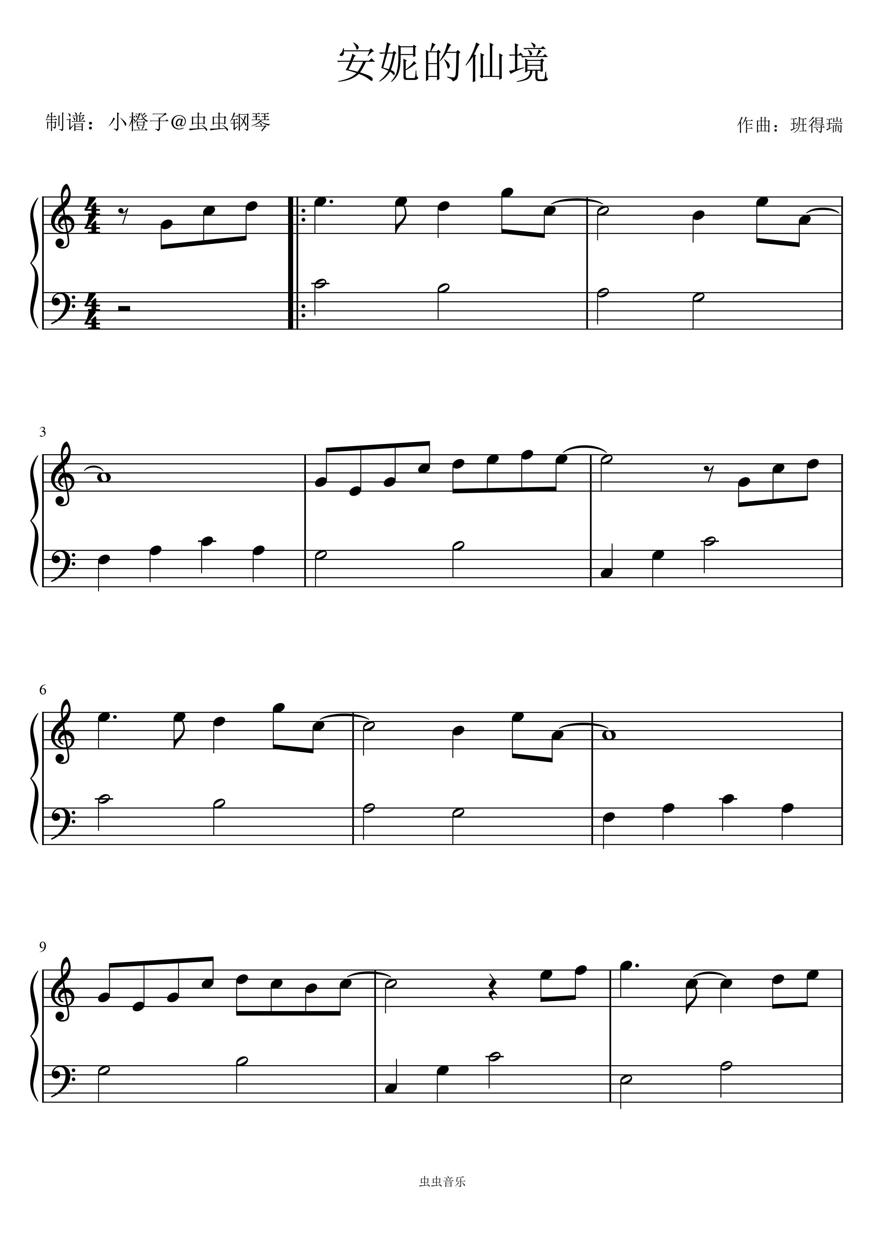 • 安妮的仙境钢琴简谱 C调 数字双手