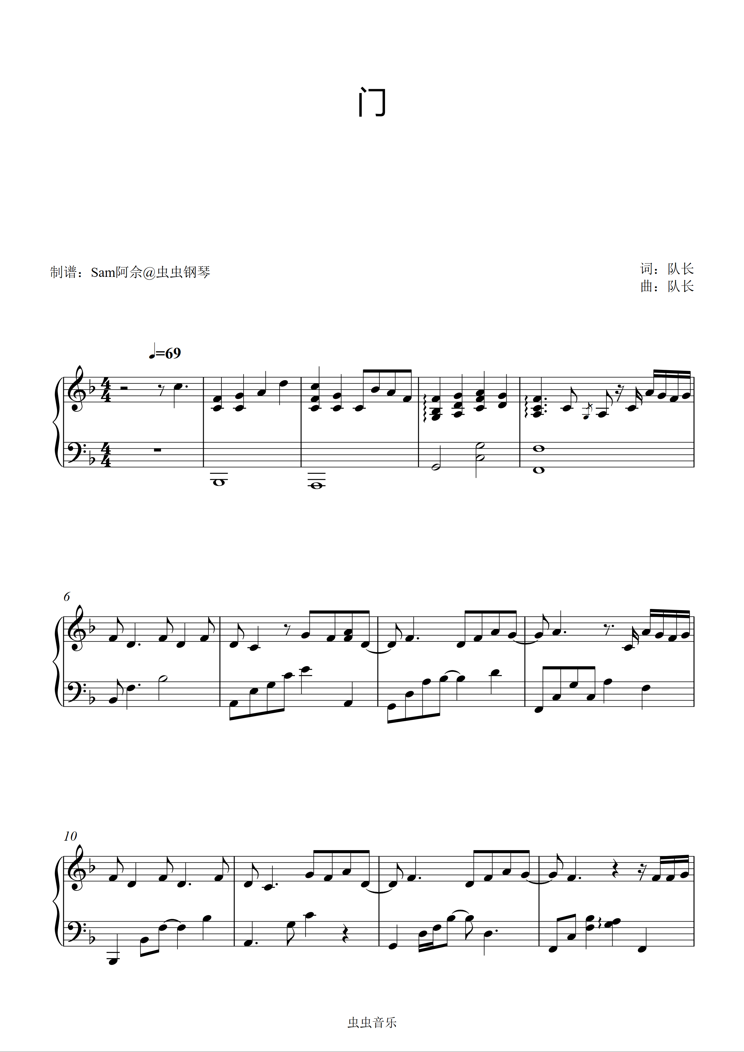• 贝多芬的门钢琴简谱 C调 数字双手
