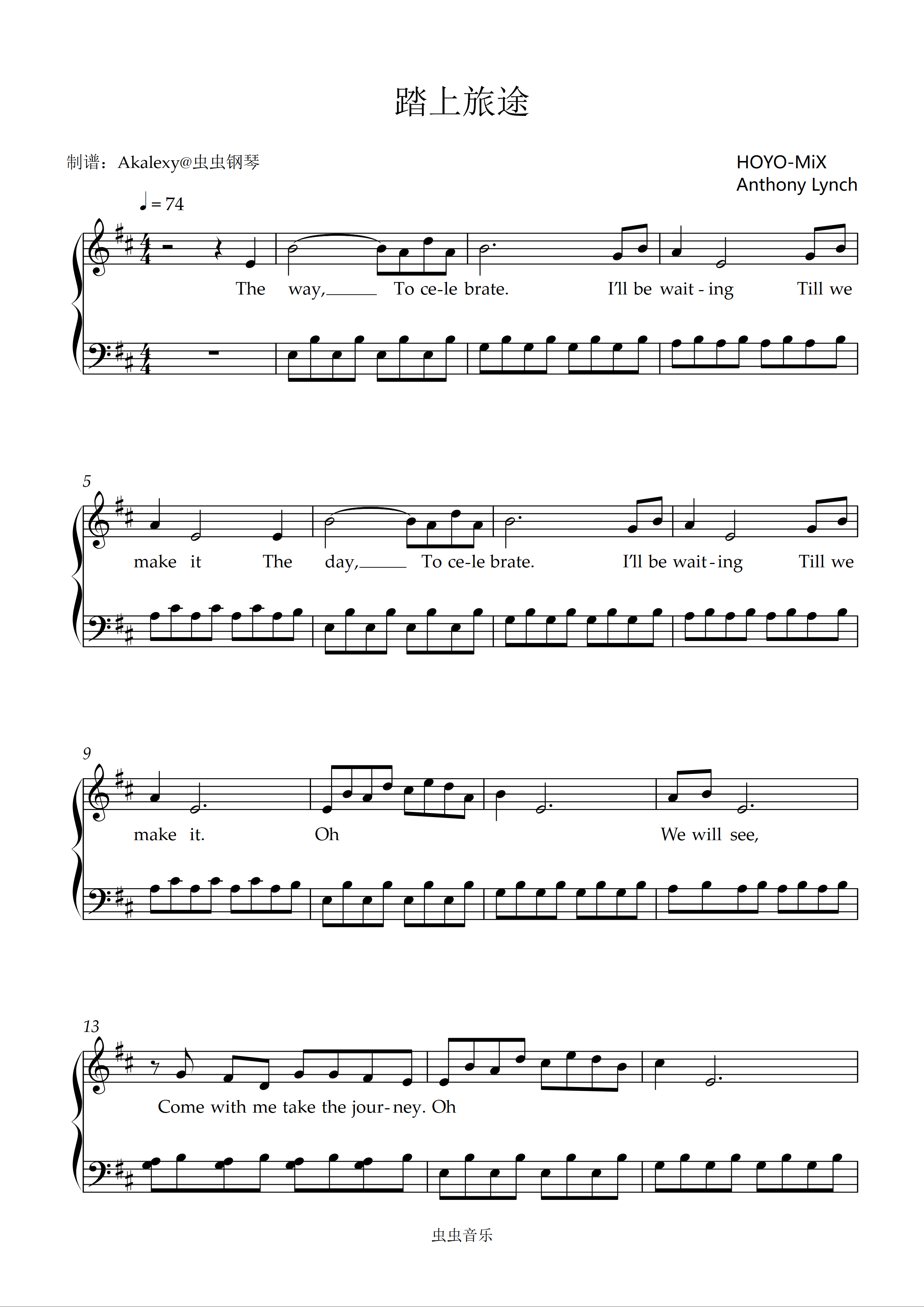 钢琴谱:踏上旅途 Take the Journey(英语弹唱版)