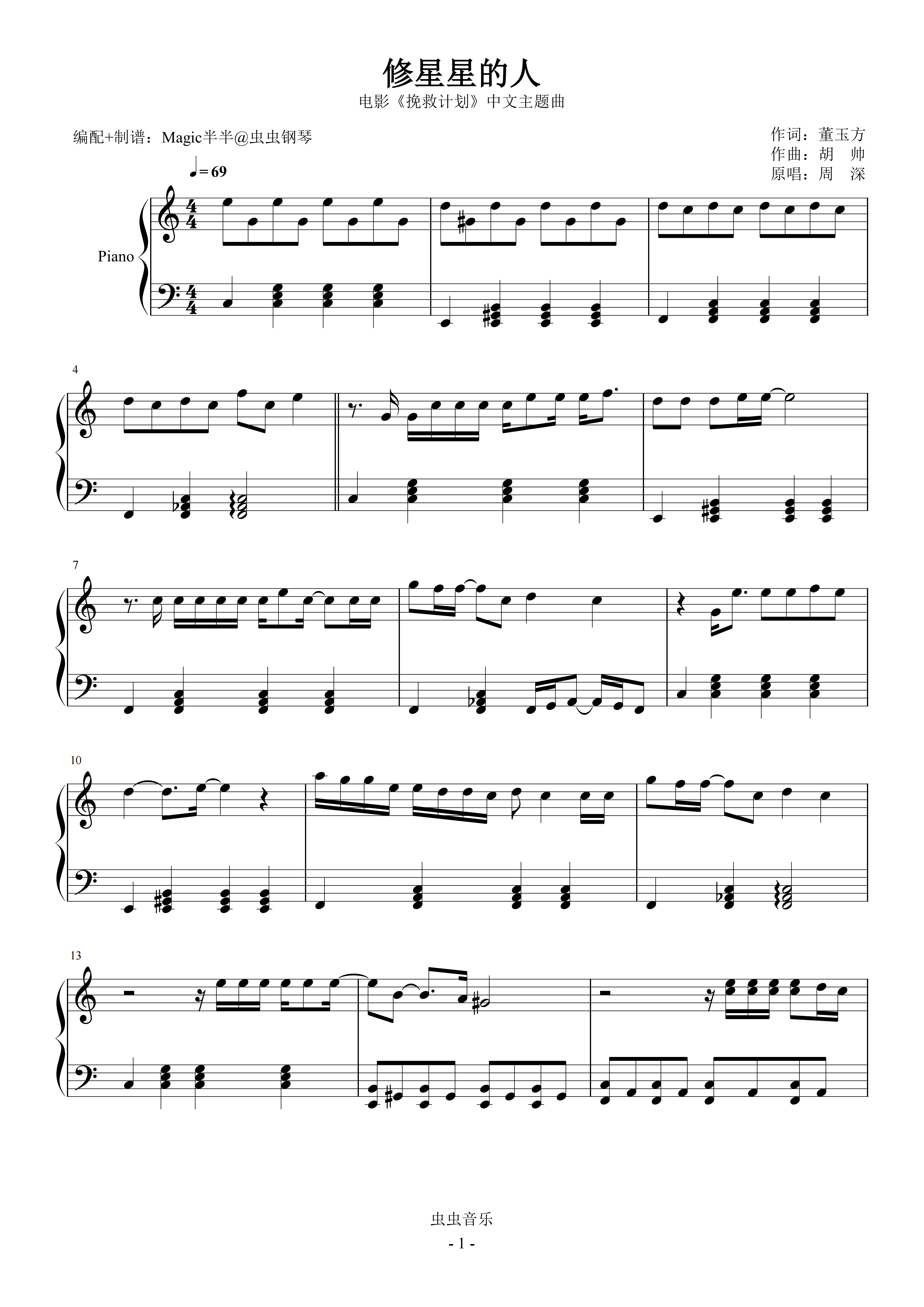 修星星的人(实用精华版/独奏C) <挽救计划>电影中文主题曲