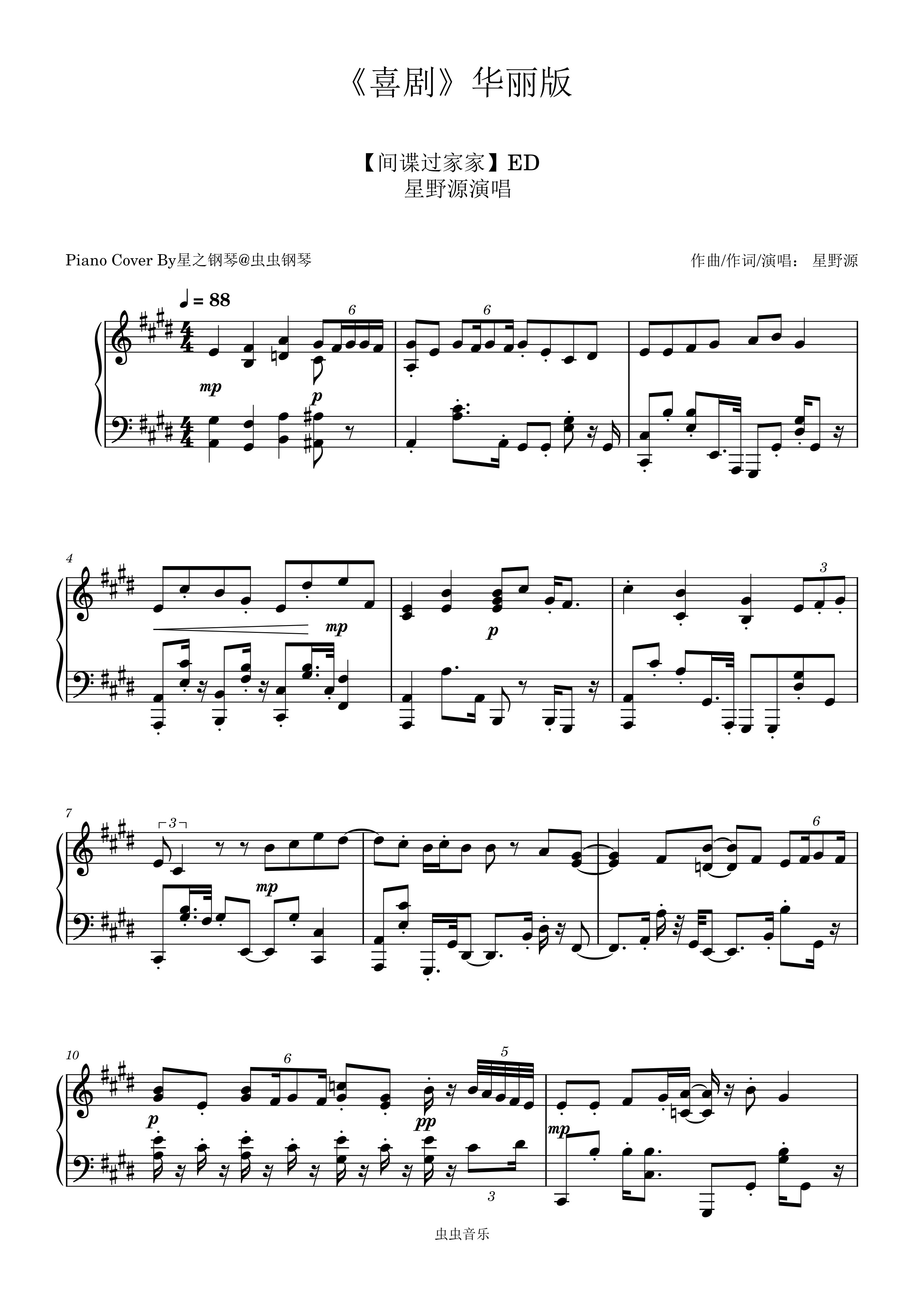 • 喜剧钢琴简谱 E调 数字双手 星野源