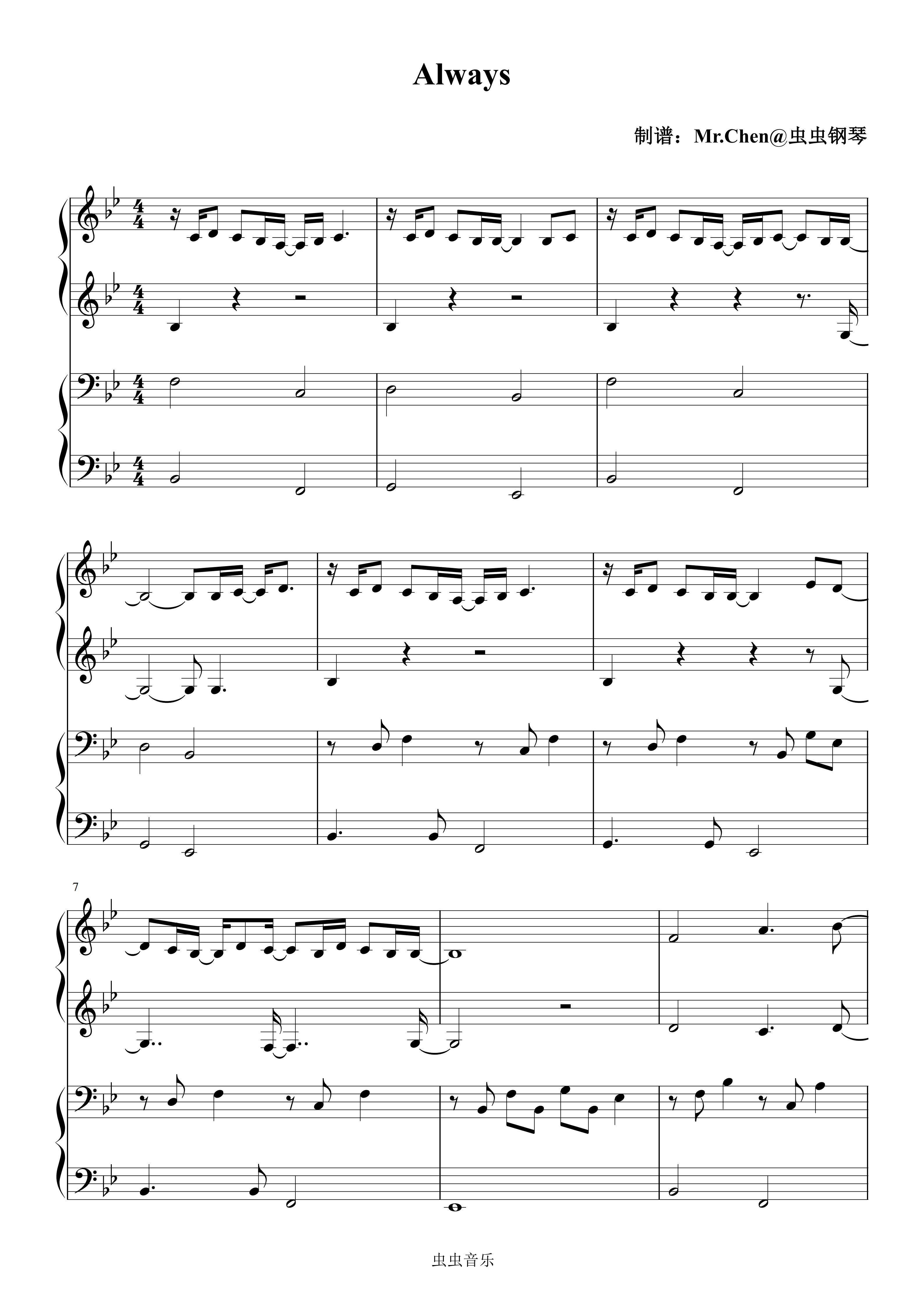 钢琴谱:Always (四手联弹)- 韩剧《太阳的后裔》主题曲