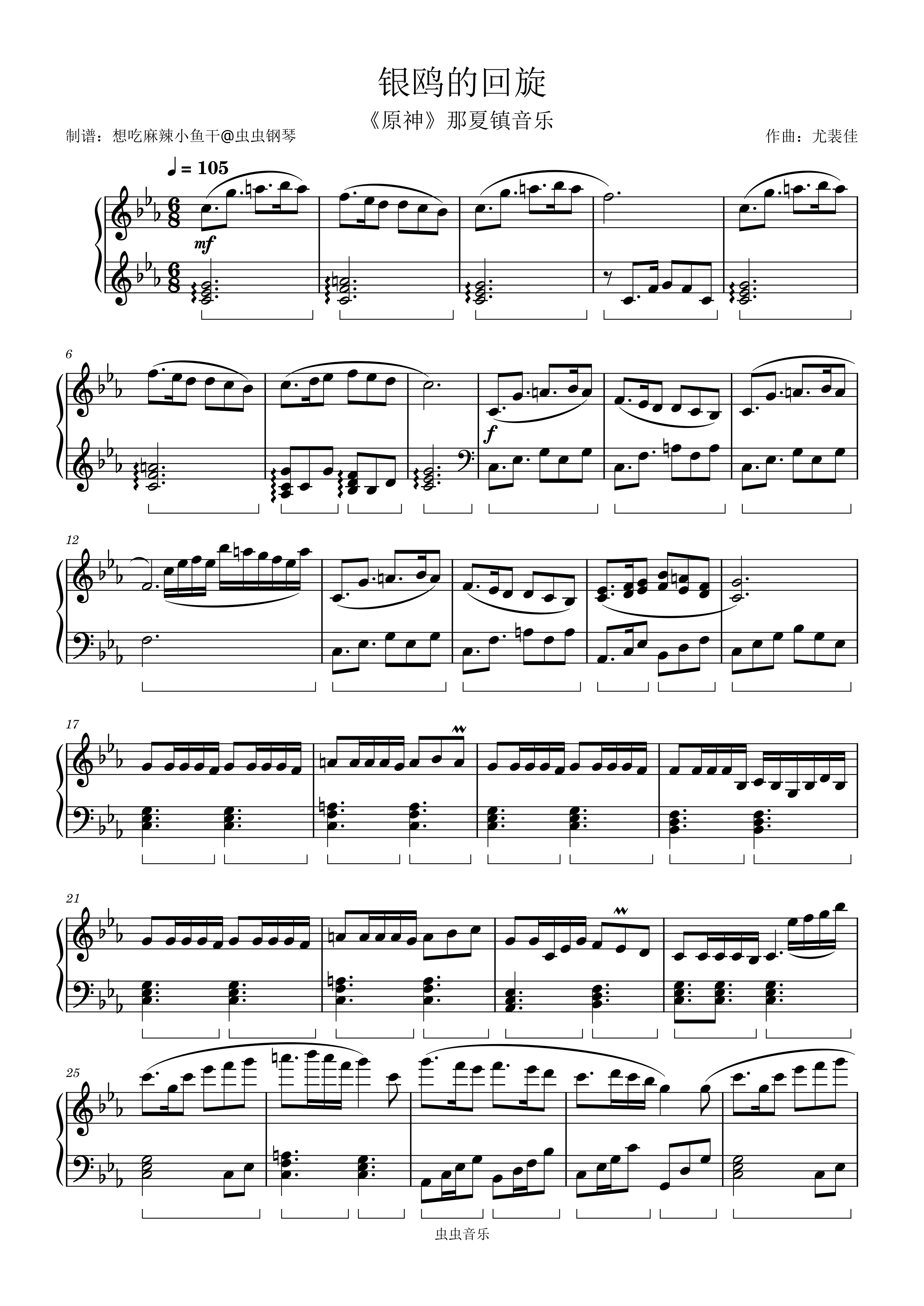 钢琴谱:银鸥的回旋(《原神》那夏镇音乐)