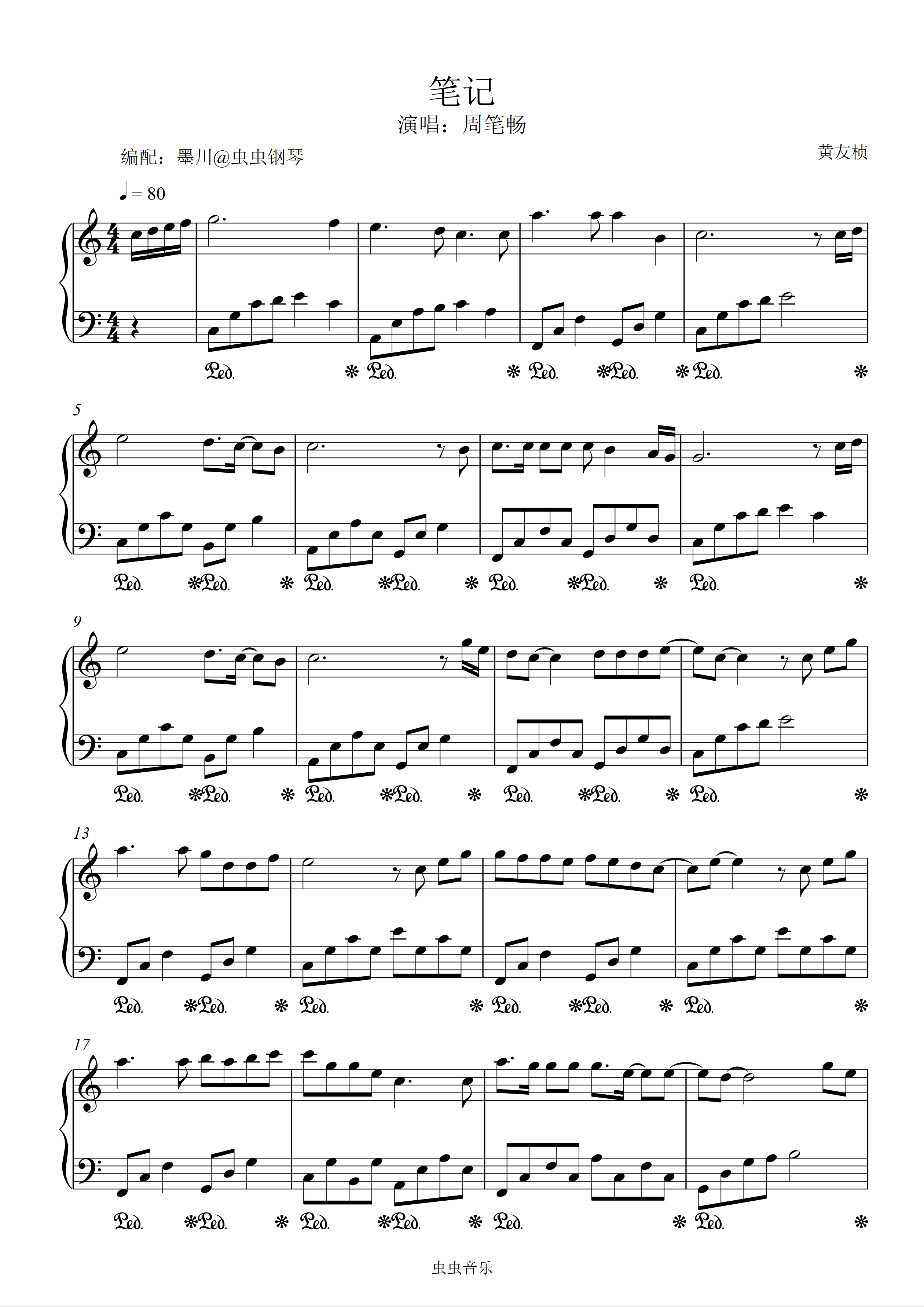 • 笔记钢琴简谱 G调 数字双手 唐恬 黄友桢
