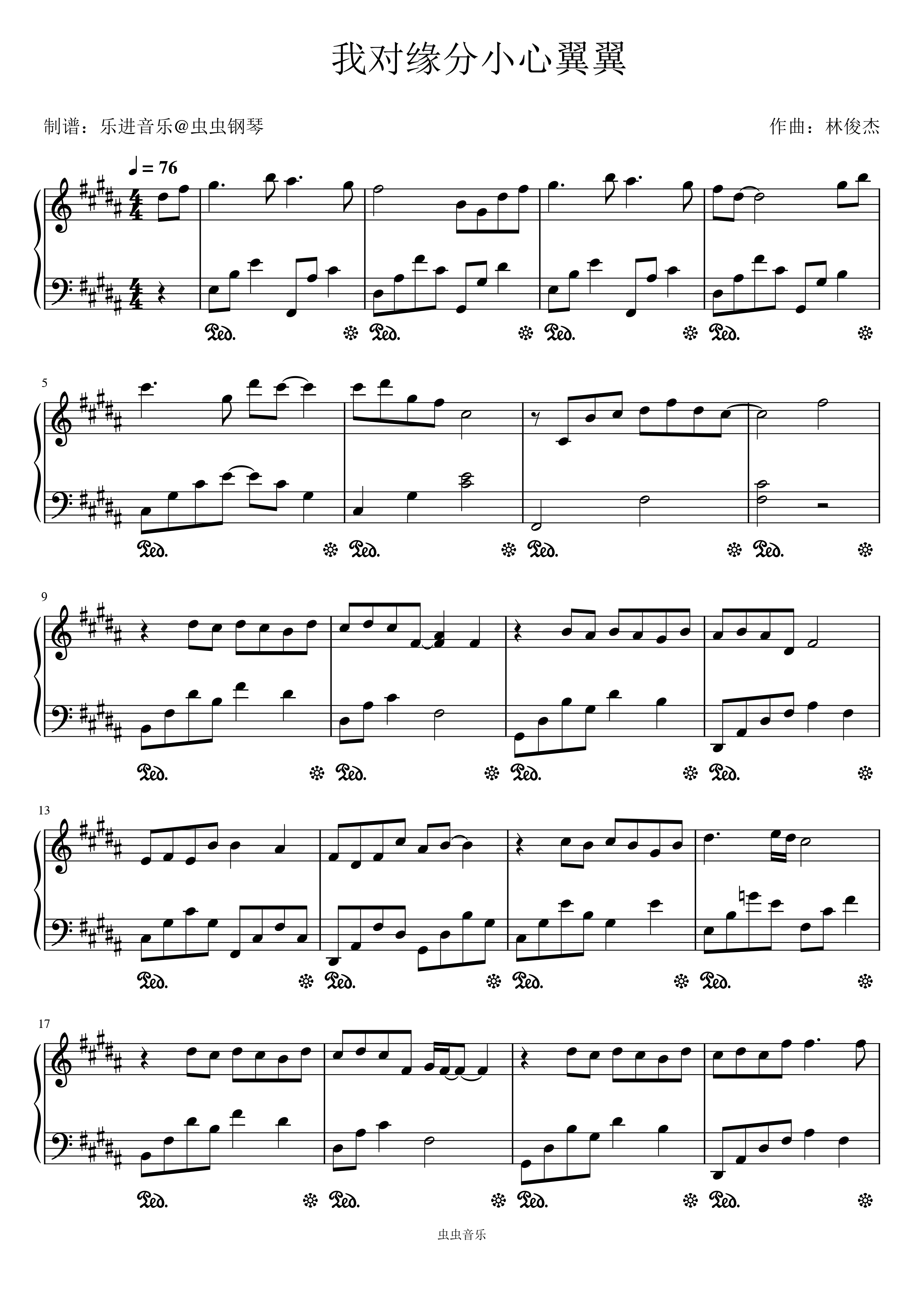 钢琴谱:《我对缘分小心翼翼》原调