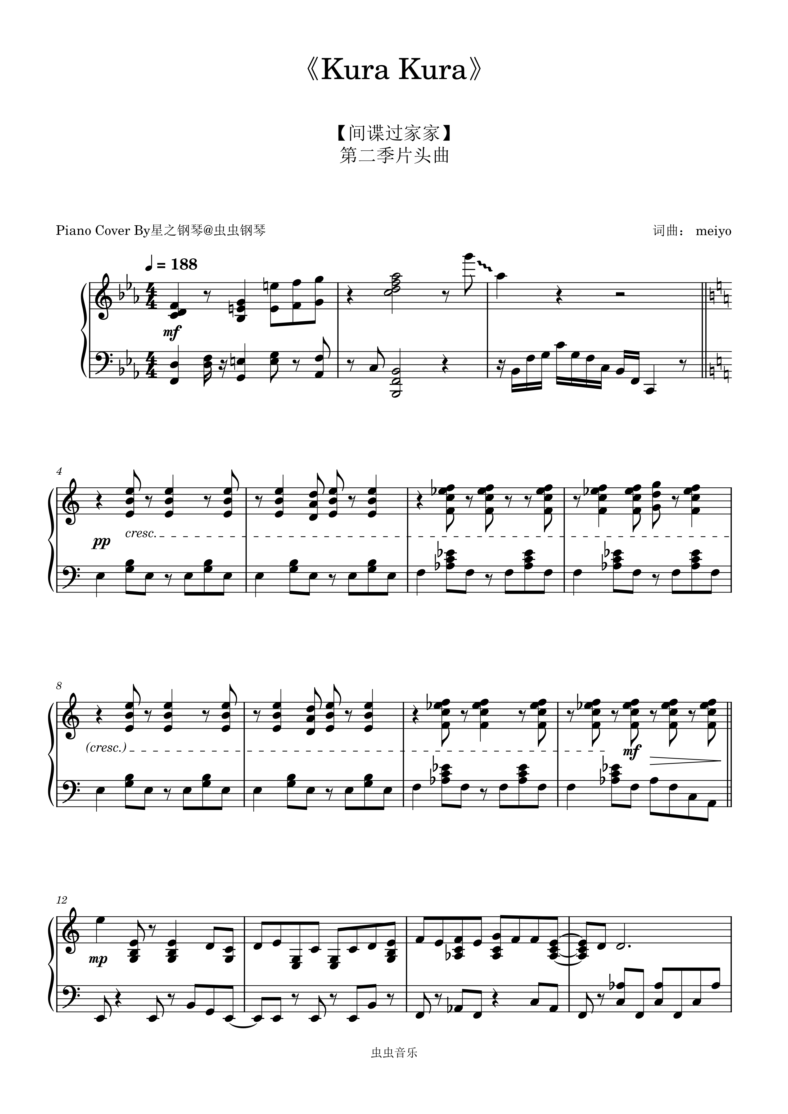 【间谍过家家】第二季OP《Kura Kura》极限华丽钢琴谱~星之钢琴~