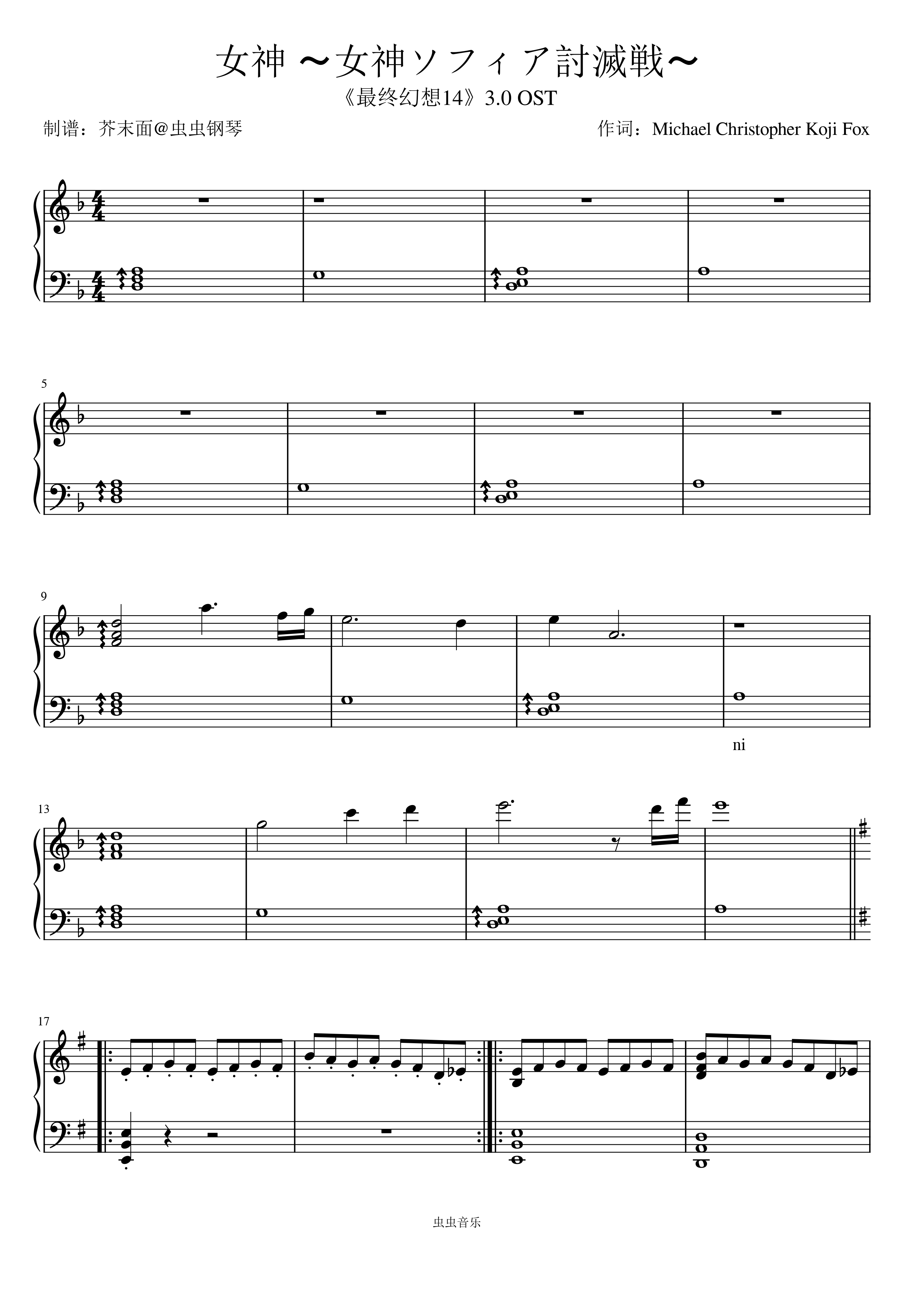 钢琴谱:女神 〜女神ソフィア討滅戦〜(《最终幻想14》主题曲)