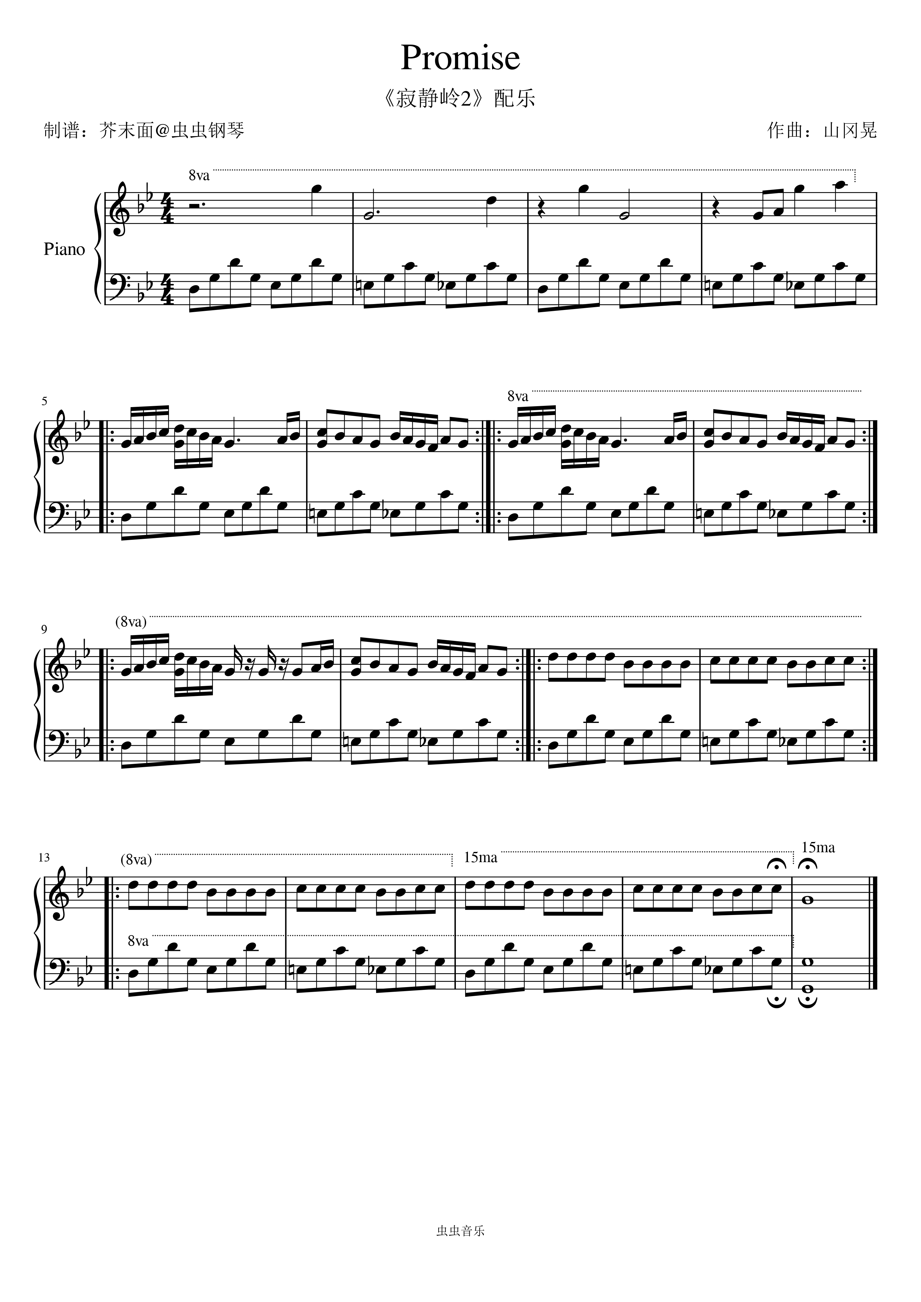 钢琴谱:Promise(寂静岭2游戏配乐)
