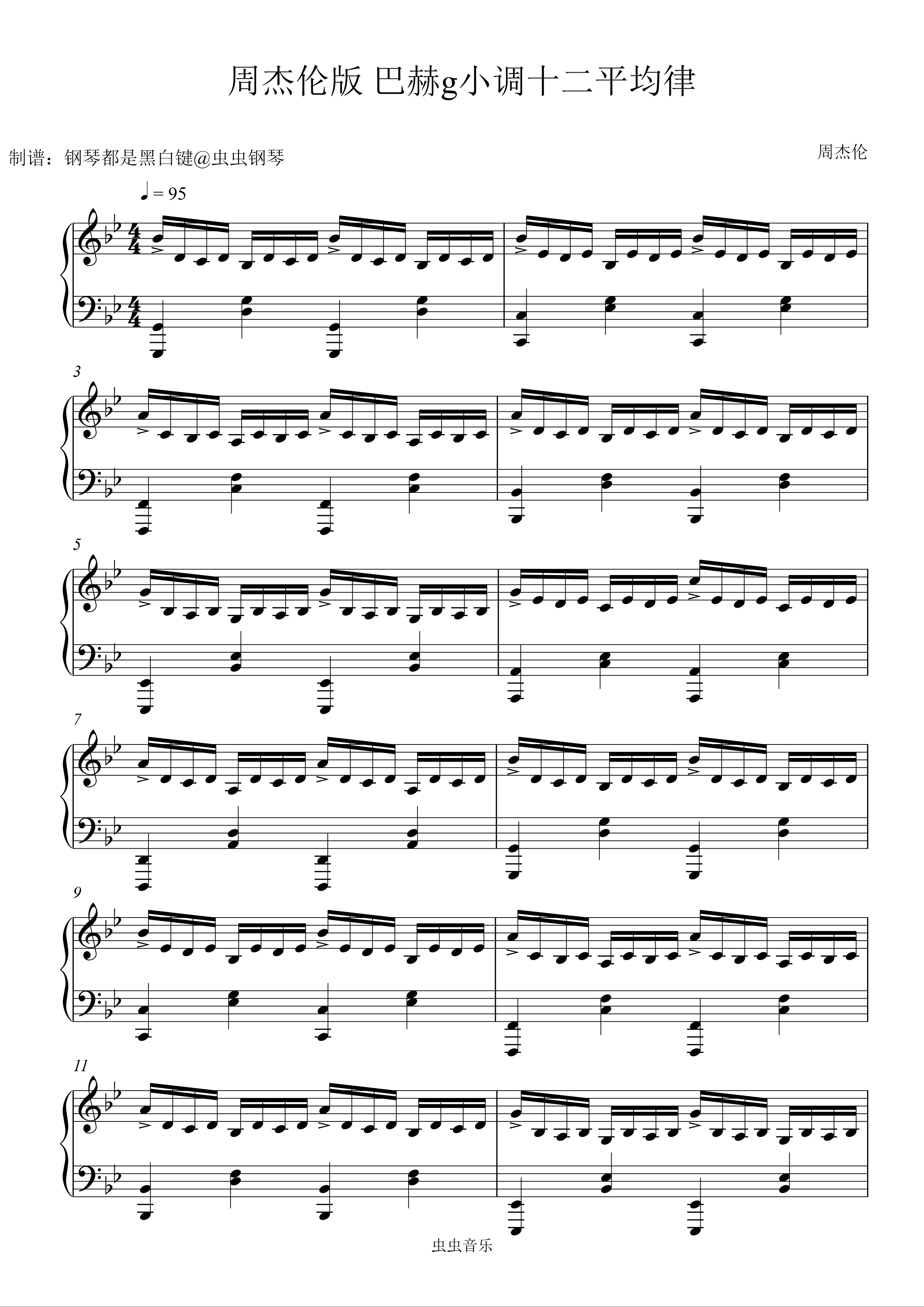 钢琴谱:周杰伦版 巴赫g小调十二平均律