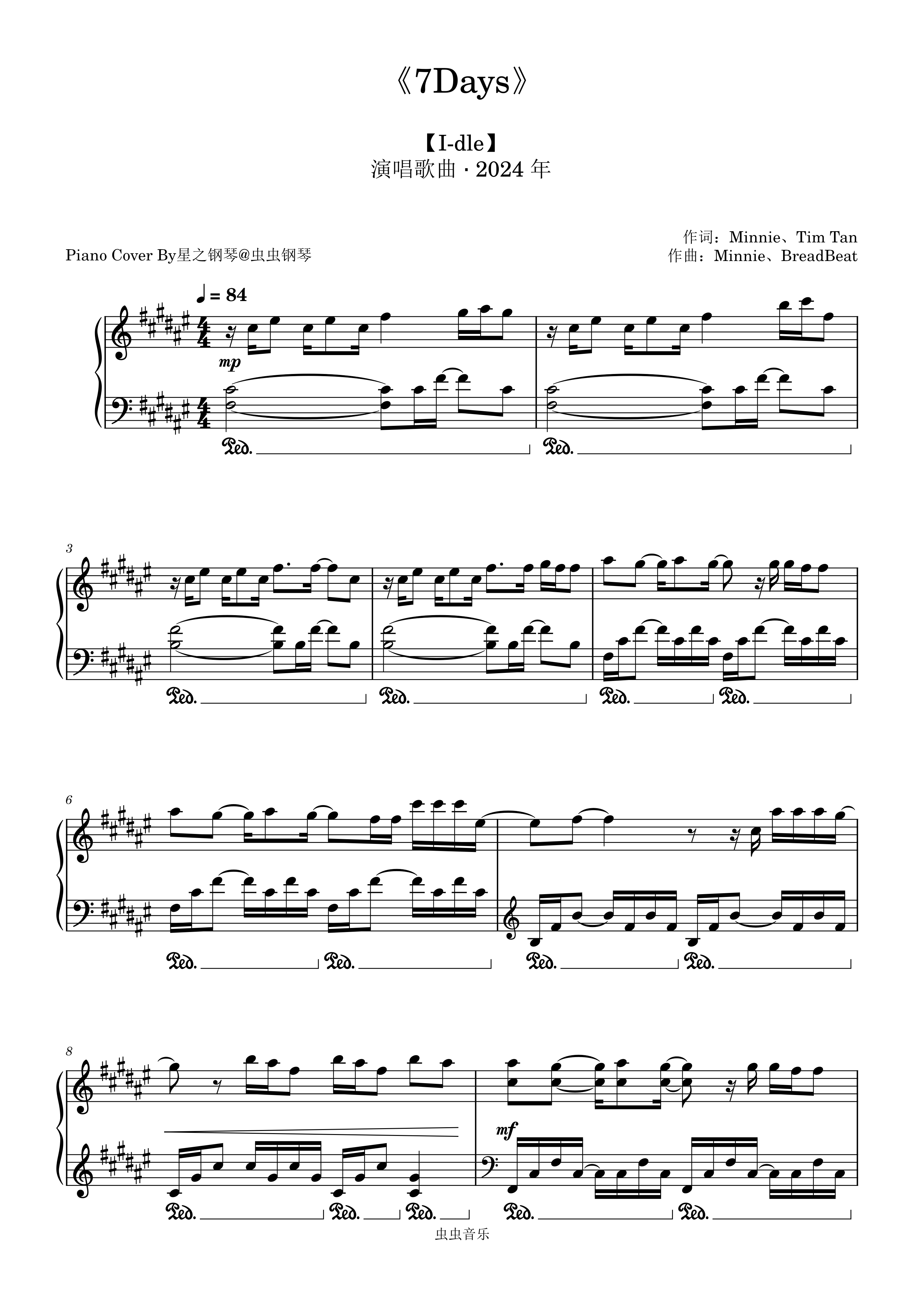 • 7Days钢琴简谱 F#调 数字双手 민니 / Tim Tan