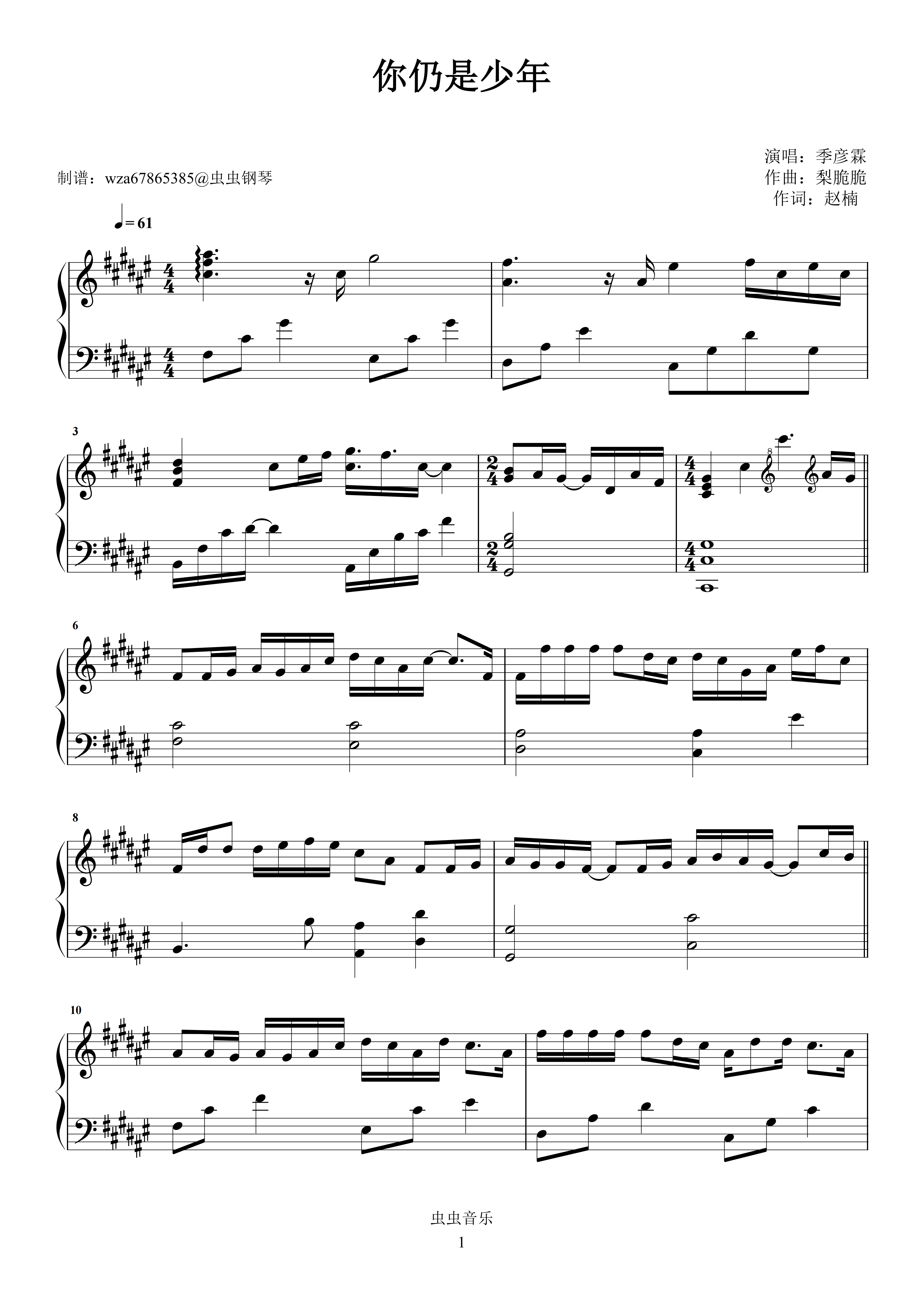 钢琴谱:你仍是少年