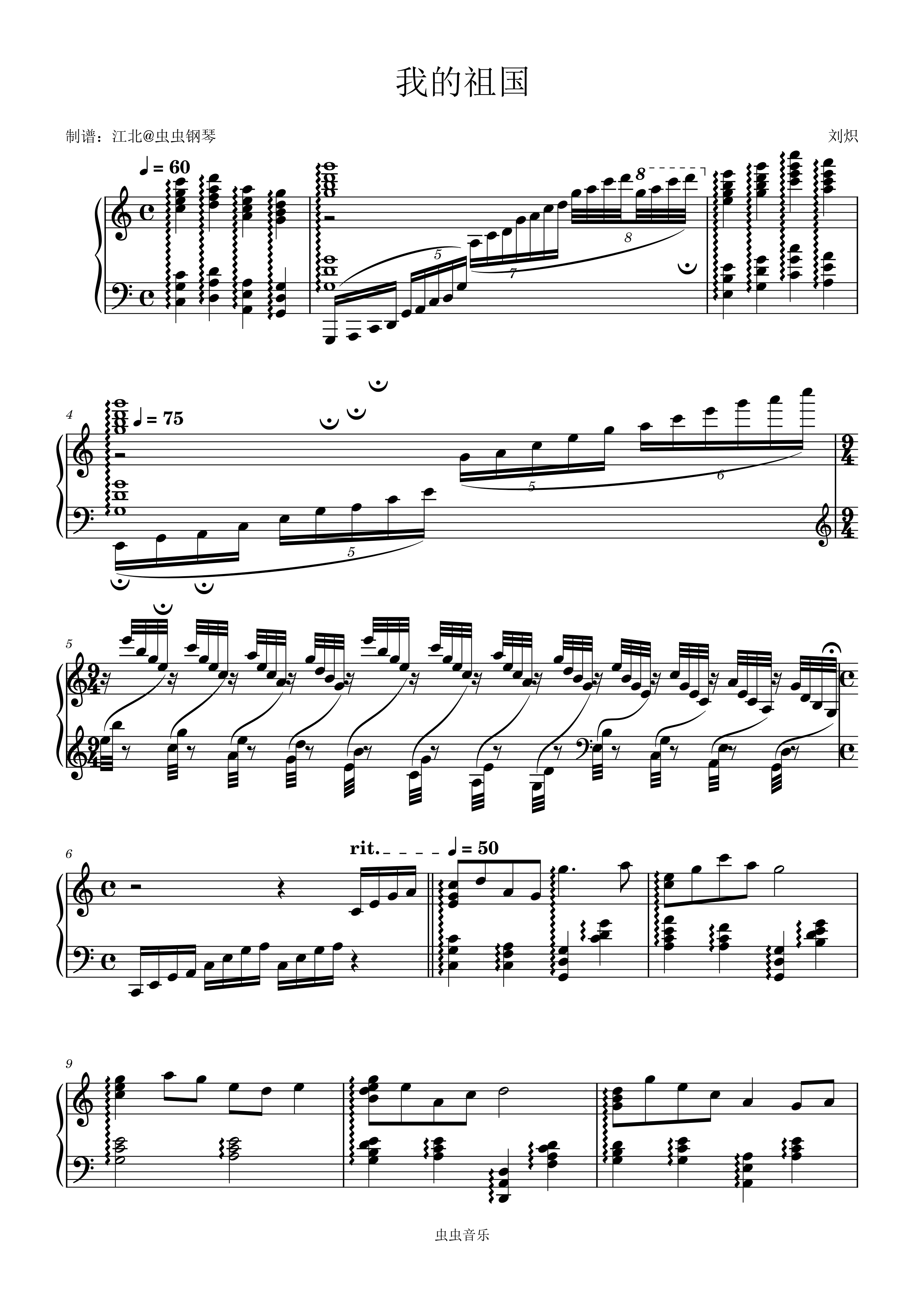 • 我的祖国钢琴简谱 C调 数字双手