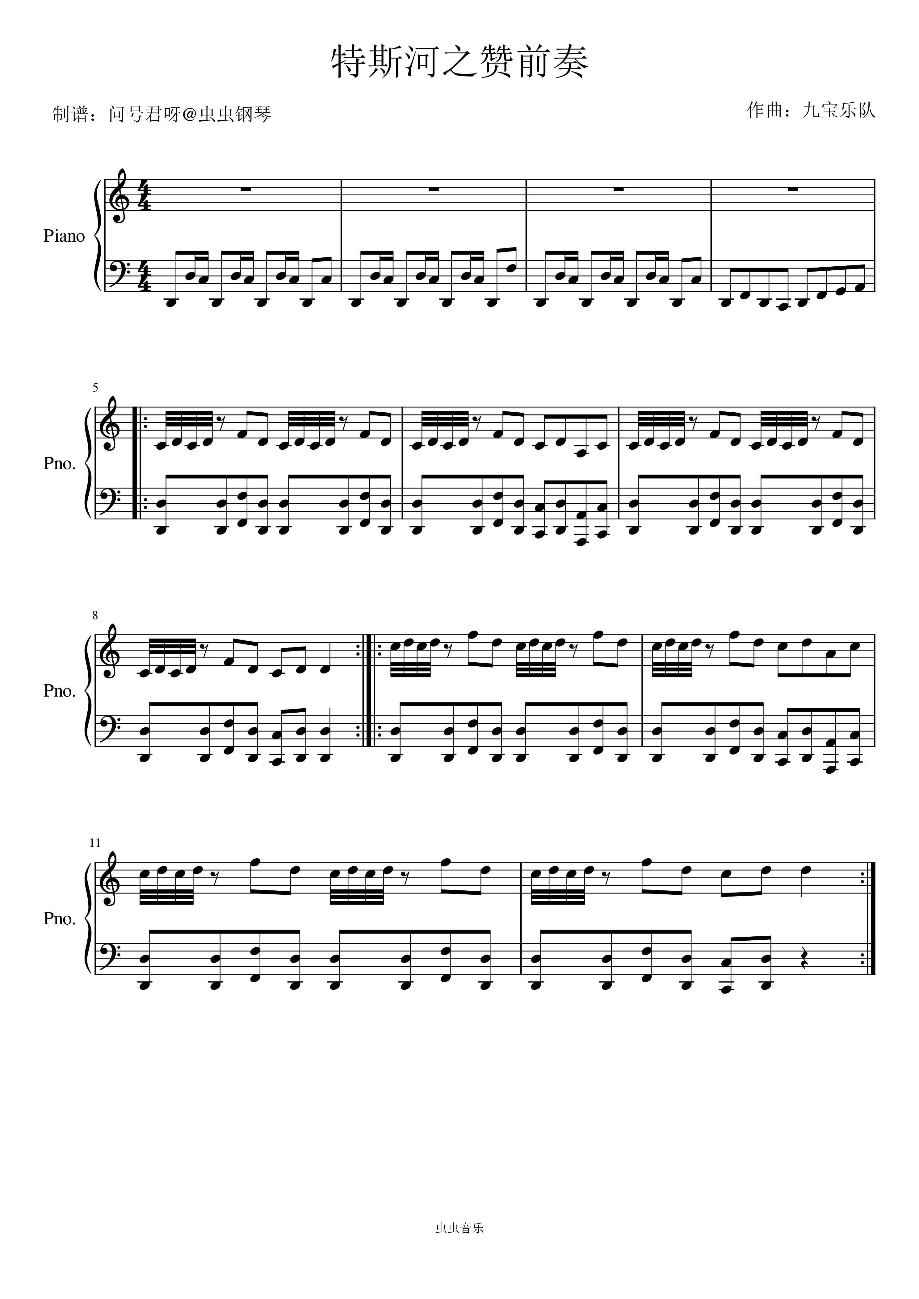 特斯河之赞钢琴简谱 数字双手 九宝乐队
