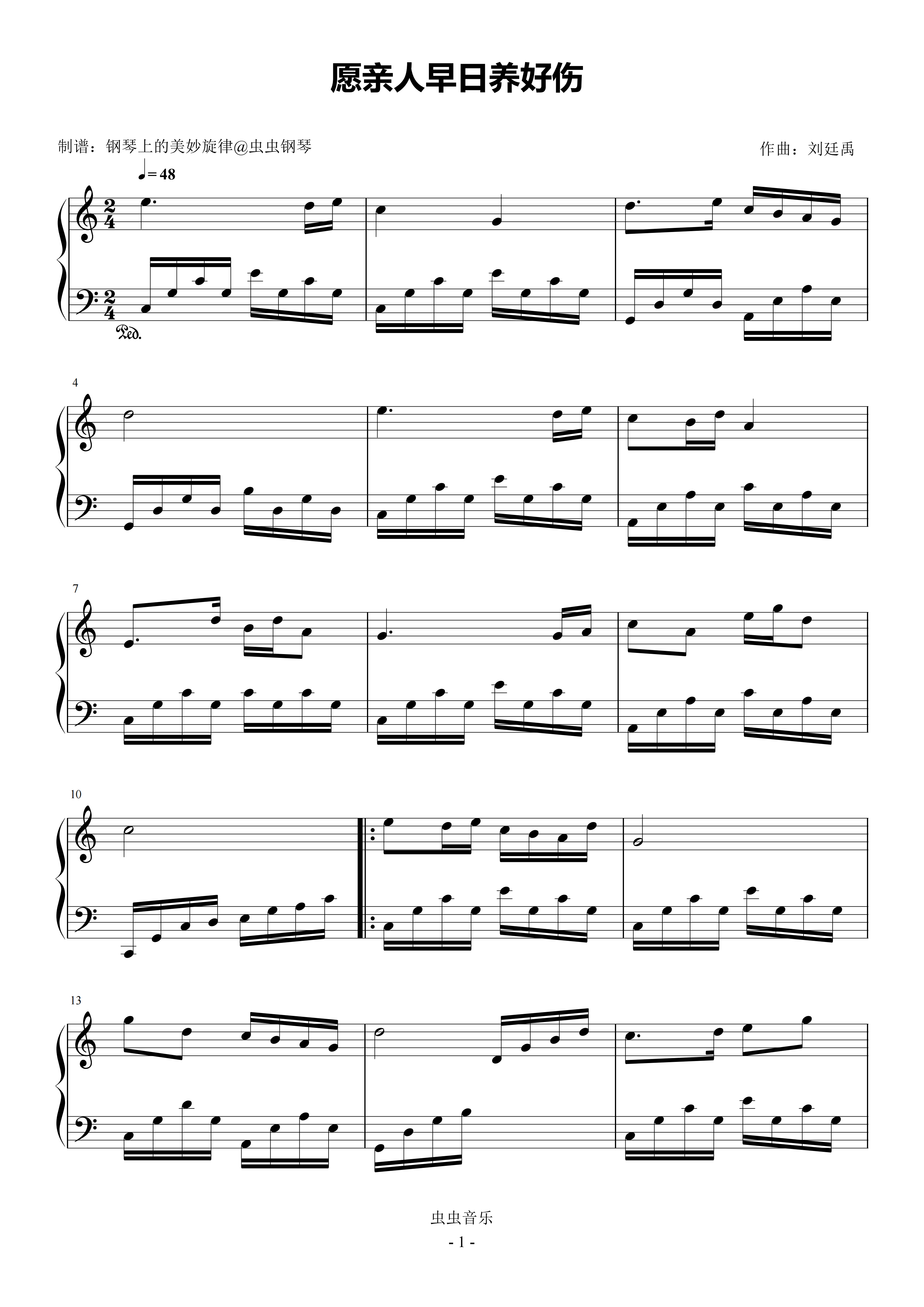 愿亲人早日养好伤钢琴简谱 数字双手
