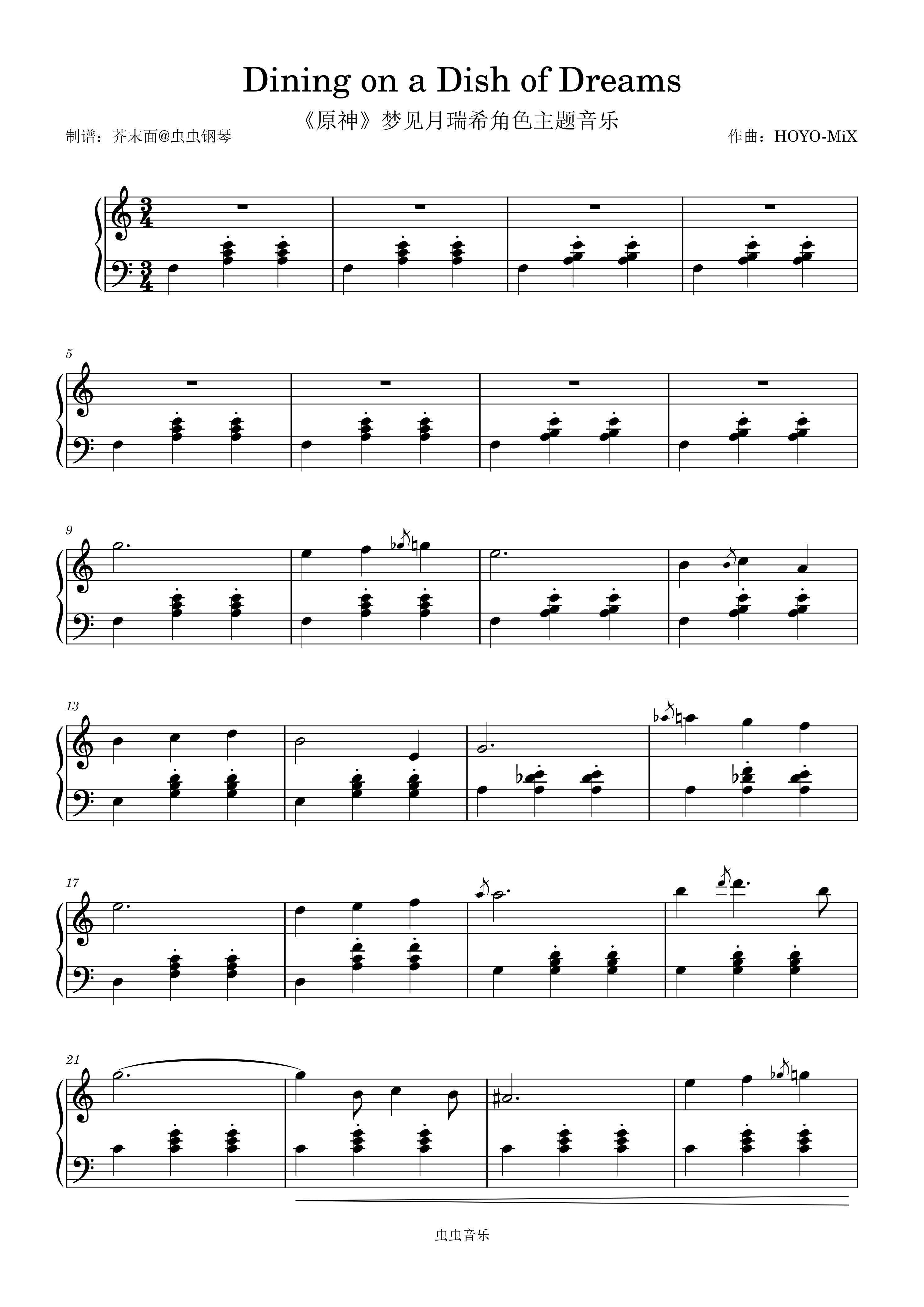 钢琴谱:Dining on a Dish of Dreams(《原神》梦见月瑞希角色主题音乐)