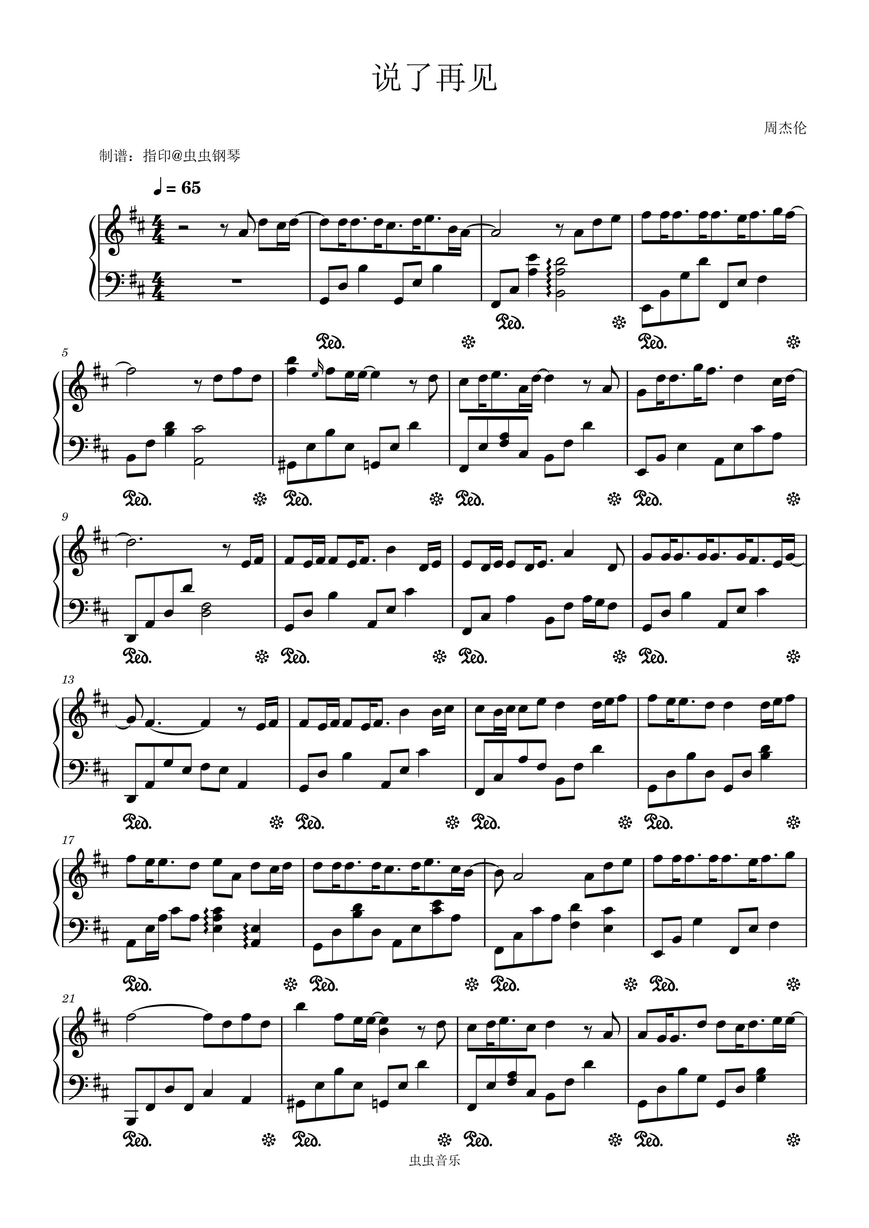 • 说了再见钢琴简谱 D调 数字双手 古小力/黄凌嘉