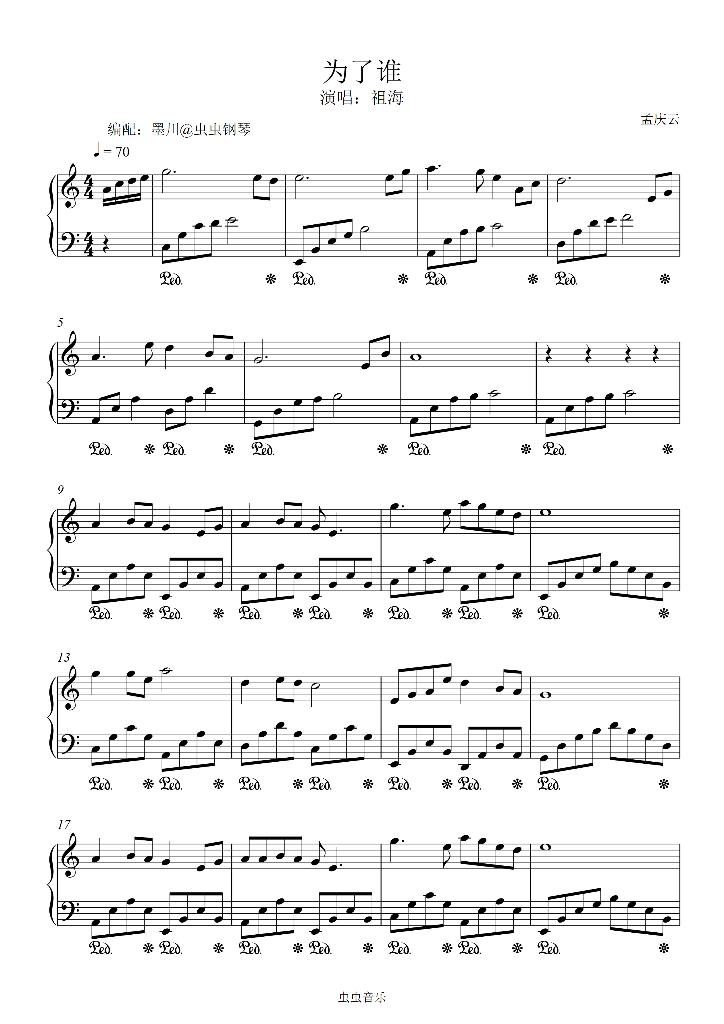 钢琴谱:为了谁—祖海—C调简易编配