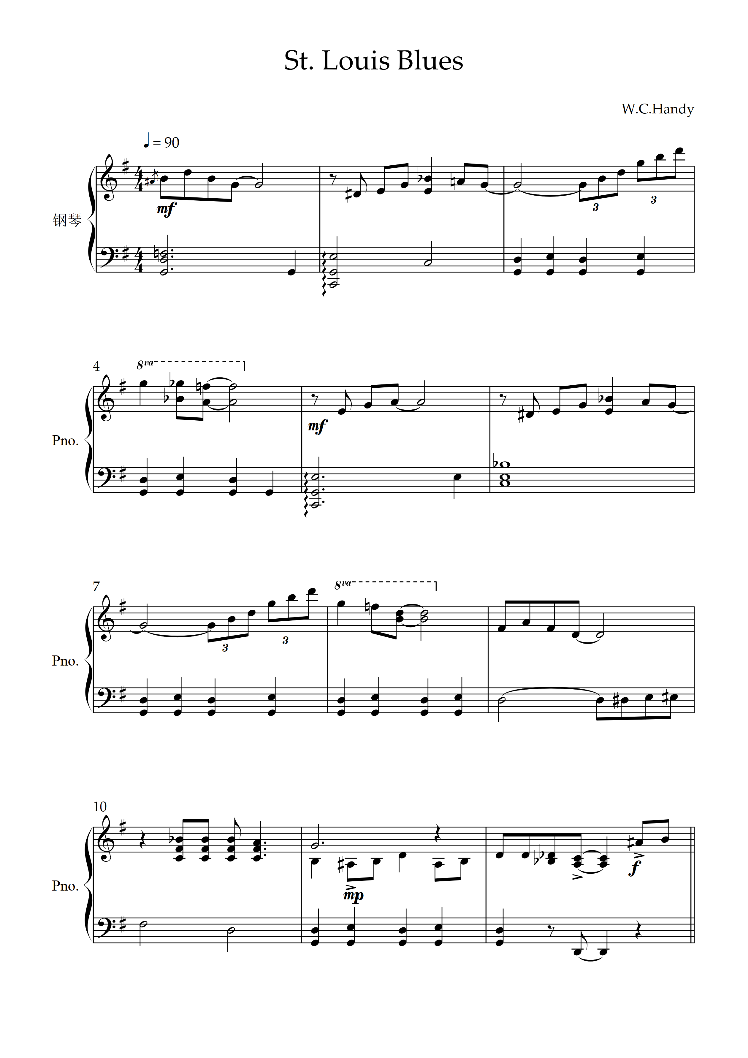 • St. Louis Blues钢琴简谱 Bb调 数字双手