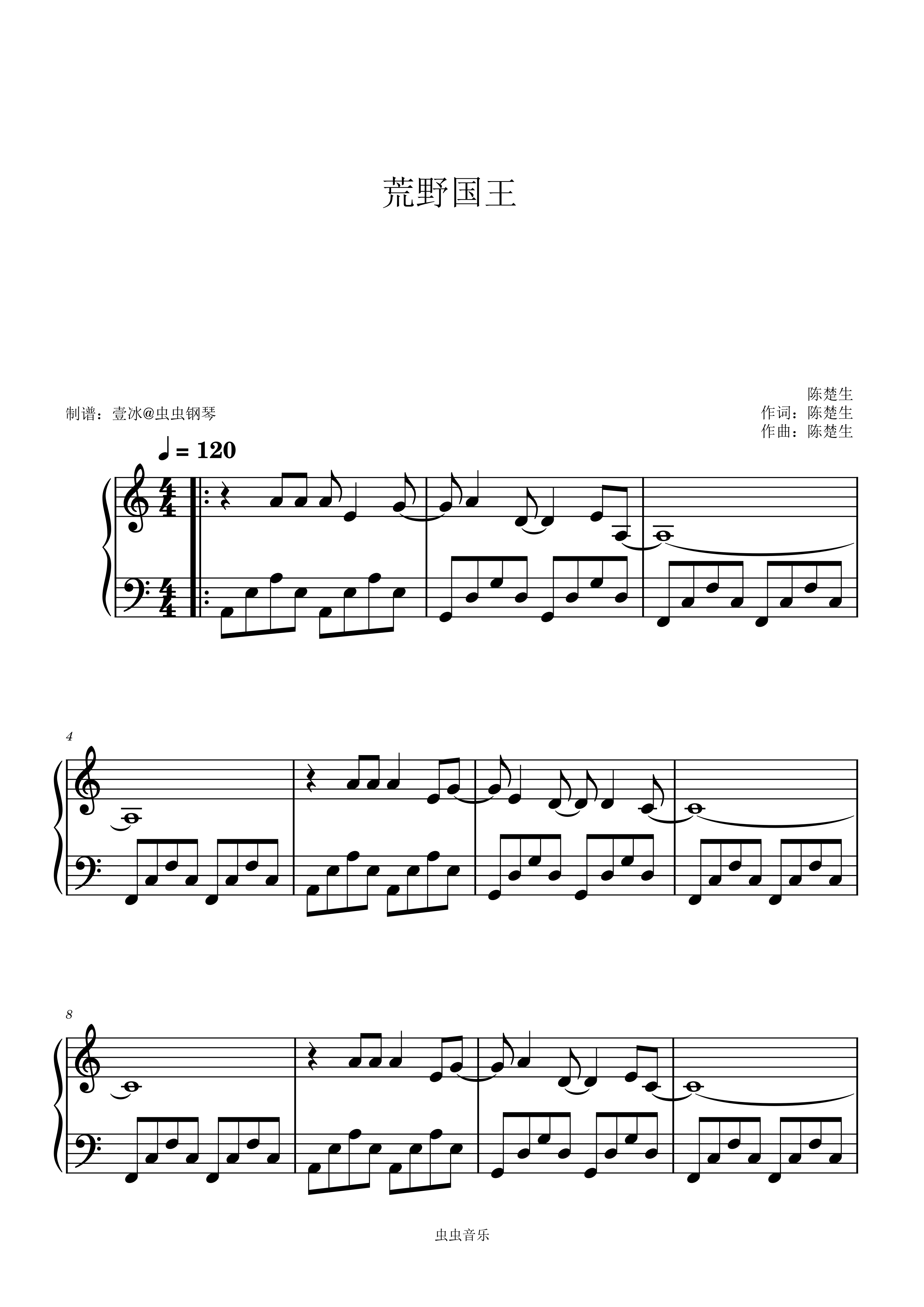 钢琴谱:荒野国王 陈楚生 C调